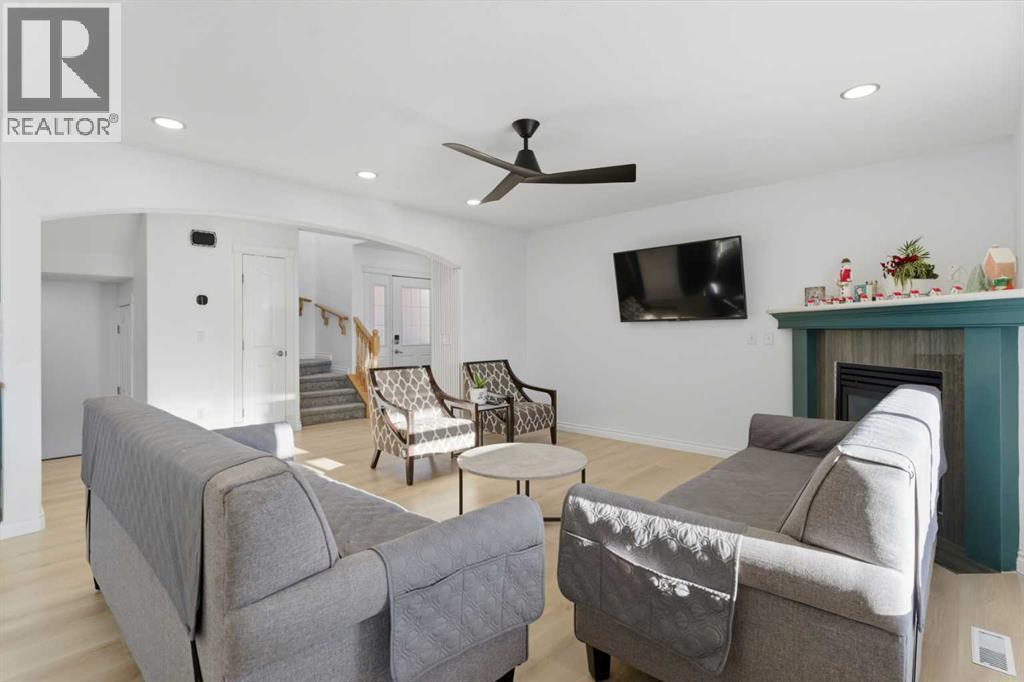 Welcome to this beautifully updated, bright, and immaculate walkout home, perfectly situated on a quiet cul-de-sac in the desirable community of Bayside. Offering approximately 1834 sq. ft. of developed living space, this home features 4bedrooms, 3 full bathrooms, 1 half bathroom, a spacious bonus room, and a fully finished walkout basement. The open-concept main floor is flooded with natural light from large south-facing windows and showcases durable laminate flooring, a generous living room with a corner gas fireplace, and an updated kitchen complete with countertops, backsplash, stainless steel appliances, and a large walk-in corner pantry. Upper-level highlights include a functional bonus room with high ceilings and large windows, a private primary retreat with walk-in closet and ensuite, two additional well-sized bedrooms, and a full bathroom. The fully finished walkout basement offers a large recreation area, two bedrooms, a full bathroom, and ample storage. Step outside to enjoy the sunny south-facing pie-shaped backyard featuring a raised deck with privacy screens, a private enclosed gazebo with hot tub, and a fire pit area—perfect for entertaining or relaxing. Located close to parks, schools, and amenities, this exceptional family home offers comfort, functionality, and an unbeatable location. (id:6769