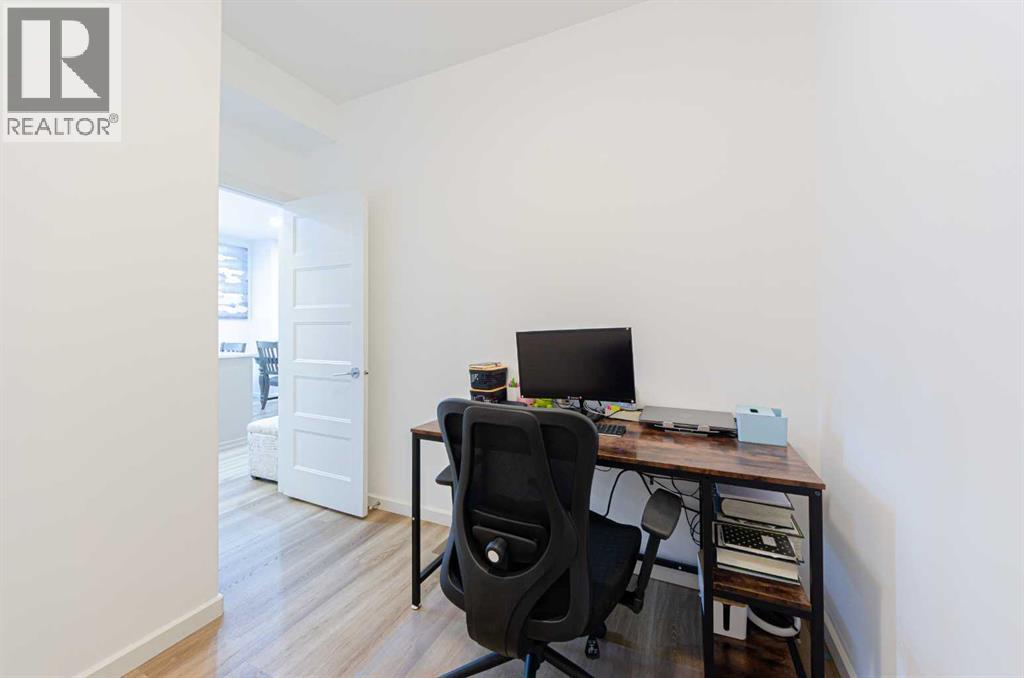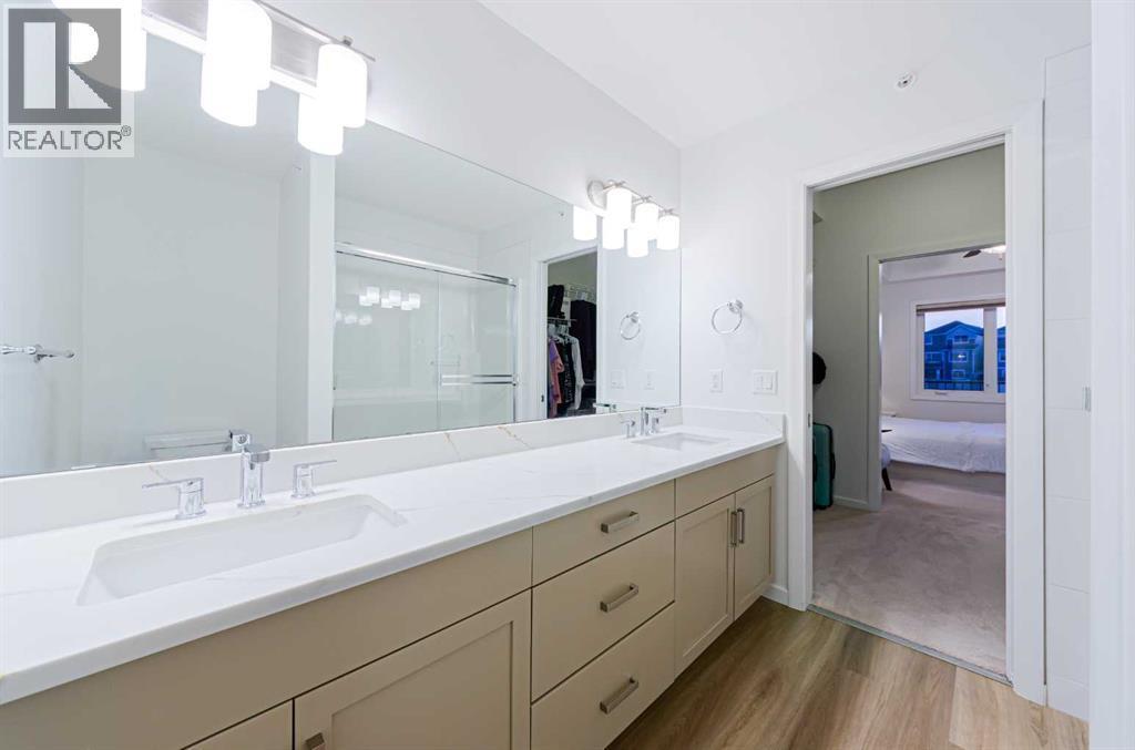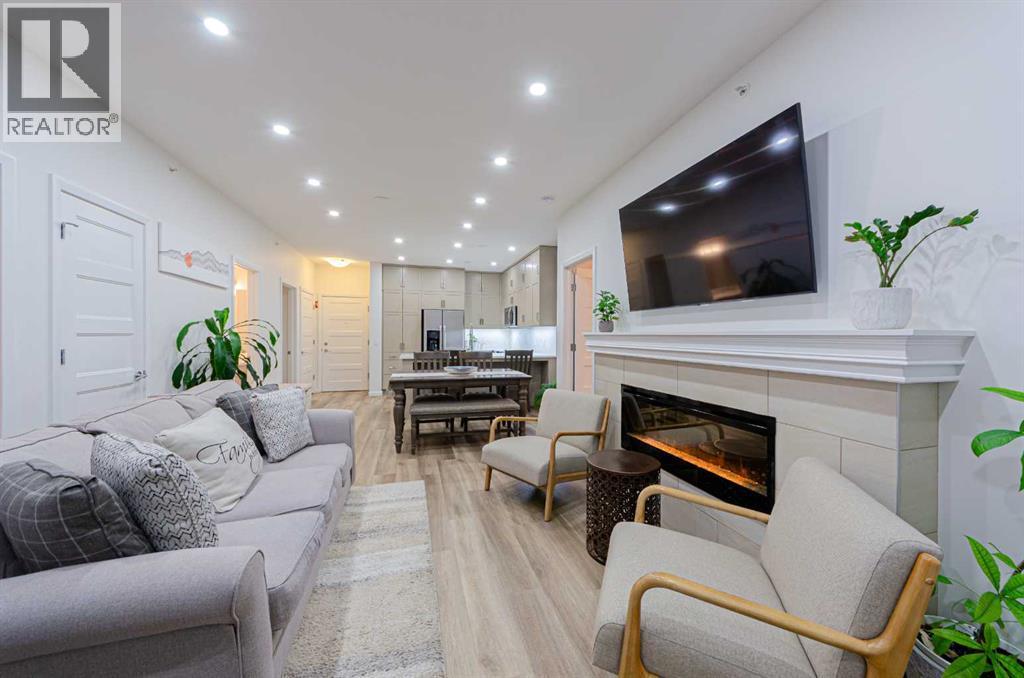 Welcome to The Pinnacle at Kincora, a boutique, meticulously crafted condominium by Cove Properties—one of Calgary’s most trusted and award-winning multifamily developers, renowned for quality construction and thoughtful design.Nestled in one of Kincora’s most peaceful enclaves, this elegant 2-bedroom plus den (or home office), 2-bath residence offers an exceptional blend of comfort, style, and functionality, all within walking distance to scenic parks, pathways, and everyday shopping conveniences.Offering 1,000 sq. ft. of spacious single-level living, this beautifully upgraded home showcases quartz countertops throughout, designer tile, luxury vinyl plank flooring, and refined fixtures and finishes. The kitchen is equipped with high-end Frigidaire stainless-steel appliances, a one-year-old microwave, and cabinetry enhanced with LED lighting, creating both style and practicality.Enjoy year-round comfort with a portable A/C unit, and appreciate thoughtful upgrades including 16 pot lights that add warmth and brightness throughout the home.A rare find in condo living, this unit includes two titled parking stalls—one heated underground and one convenient outdoor stall directly in front of the building—plus bike storage, offering outstanding flexibility and convenience.Step outside to your private, comfortable balcony, complete with wood-style flooring, a gas line, and a one-year-old, barely used Weber BBQ—perfect for relaxing or entertaining.Situated in a secure, maintenance-free, 18+ building, The Pinnacle at Kincora offers a unique combination of luxury, tranquility, and effortless living. Pets are permitted with board approval.This is a rare opportunity to own a beautifully upgraded home in an exceptional community—don’t miss your chance to make it yours. (id:6769