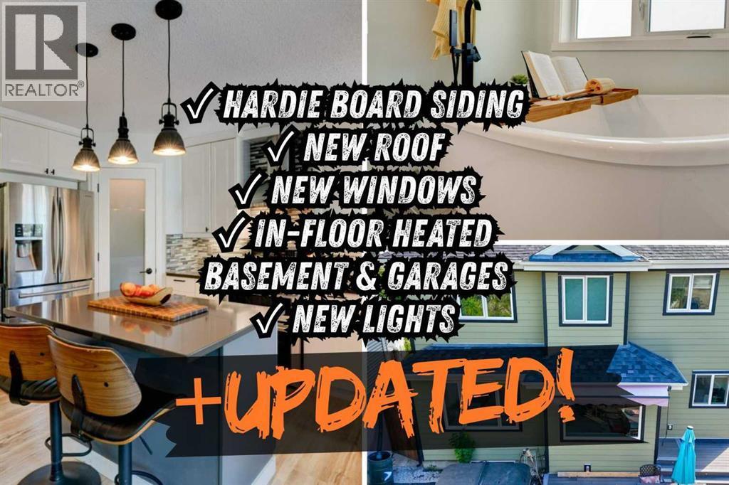 Rare Lake Chaparral opportunity with TWO oversized heated double garages, one front attached and one rear detached. Over 2,450 sq ft of developed space, with major exterior upgrades already done: Hardie Board siding, New Roof, New windows and doors. In-floor heat in the basement and both garages plus A/C for summer comfort. Functional layout with open main floor, generous kitchen workspace with under-cabinet lighting and built-in microwave, corner gas fireplace, bonus room, upper laundry, 3 bedrooms up, flex room down and 4 total bathrooms. Sunny west-facing yard with composite deck and low-maintenance landscaping. Just one block to lake access and walking distance to two schools, parks and pathways, with quick access to shopping, Fish Creek, golf and transit. A standout for buyers who need rare, heated garage space to build, store, create, or run a home business, with year-round Lake Chaparral living at your doorstep. (id:6769