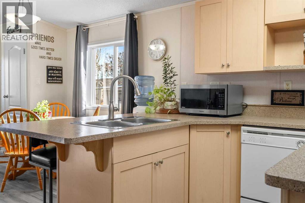 *** OPEN HOUSE SUNDAY JANUARY 25, 12:00-3:00 *** Why purchase an apartment or a townhome when you can own a detached home for less without any condo fees and still own the land. This well-maintained 2005 manufactured home sits on a spacious pie-shaped lot and includes anchored tie-downs—ideal for mortgage approval and insurance requirements. The property features an oversize 22x20 double detached garage with a new heater (2022), 220V power, and a sub-panel. Including the extra long driveway, this property can accommodate a total parking of at least 7 vehicles. Enjoy a fully fenced, private backyard—perfect for pets—along with a sunny front porch and a relaxing back deck, all located on a quiet cul-de-sac. The best part? You own the land outright with no added fees. Inside, this bright, sun-filled home offers approximately 1,000 sq. ft. of comfortable living space, showcasing pride of ownership throughout. Major updates include a new house roof (2021), garage roof (2023), hot water tank (2014), high-efficiency furnace (2005), a Costco storage shed (2023), and new asphalt (2023). Flooring, carpet, and interior paint have also been refreshed. The thoughtfully designed layout features 3 bedrooms and 2 full 4-pc bathrooms. The primary suite includes a generous walk-in closet and a private ensuite. The open-concept kitchen and living area is enhanced by vaulted ceilings, two skylights, a large pantry, centre island, breakfast bar, --perfect for everyday living and entertaining. Located within walking distance of Superstore, Tim Hortons, parks, schools, Bert Church Theatre, Big Springs Athletic Club, Genesis Place, and close to the city’s pathway system. Quick access to major routes makes commuting easy. This bright, clean, move-in-ready, low-maintenance property offers exceptional value—whether you're a first-time buyer, downsizing, or seeking a smart investment opportunity. (id:6769