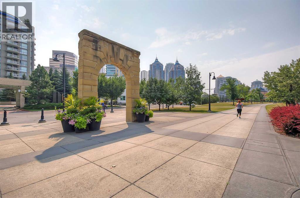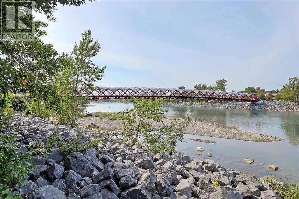 *VISIT MULTIMEDIA LINK FOR FULL DETAILS, INCLUDING IMMERSIVE 3D TOUR & FLOORPLANS!* This bright NORTH-facing 1-bed + den unit with stunning PANORAMIC RIVER VIEWS from the 22nd floor in the upscale Vogue building is a must-see! There are only 4 upgraded floors in the Vogue building, which were specially customized for Bedouin Suites, and this is one of them! EXCLUSIVE BEDOUIN FEATURES include upgraded hallways and common areas, as well as INCREDIBLE UNIT UPGRADES like custom kitchen islands with bar seating, upgraded appliances & lighting including dimmers throughout, custom bedroom panelling including built-in side tables with convenience plugs, upgraded bathrooms with tile wainscoting and glass shower doors, built-in walnut entertainment units, a Smart Sensor energy management system for the eco-minded buyer and MORE! This customized ‘VARSITY’ floorplan also had a kitchen wall removed for improved flow and natural light, and WOW, does it look good! This condo presents modern living at its finest, including an open-concept layout filled with natural light through ample floor-to-ceiling windows, complemented by luxury vinyl plank flooring adorning the main living spaces. The modern kitchen boasts wood-grain cabinets with modern hardware and under-cabinet lighting, a specially designed central island with quartz counters, a tile backsplash, a dual-basin undermount sink, and upgraded stainless steel appliances, including a chimney-style hood fan. The open main living area features a built-in walnut entertainment unit with a wall-mount TV included and access to a large balcony with a gas line for a BBQ and panoramic views of the Bow River. The bedroom features custom wall panelling with built-in side tables, wall sconce lighting and a convenient receptacle with a USB port, plus an included wall-mounted TV. A large walkthrough closet with built-in organizers and a stacked laundry leads to the 4-pc bathroom complete with occupancy-sensored lights, quartz countertops, tile wainscoting, an undermount sink with modern faucet, tile backsplash, modern vanity with storage, tile floors, and a large tub/shower combo with full height tile and an upgraded glass door. Complete with a sizeable den, a perfect home office or flex space, a titled indoor parking stall in the heated parkade and a storage locker. VOGUE is a high-end building with a ton of amenities, including central A/C, an elegant formal lobby, full-time concierge, gym, billiards, a large party room with a kitchen, a yoga studio, a Sky Lounge on the 36th floor, and multiple rooftop terraces. Surrounded by parks, transit, the LRT, shopping & more, & within walking distance to the downtown core & all Kensington shops & services – this location offers the best urban lifestyle in the Downtown Commercial Core. *Please note, the photos and the virtual tour are from the same unit, two floors up. (id:6769