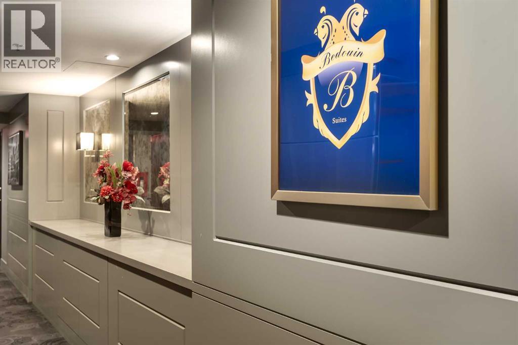 Experience elevated sophistication on the exclusive BEDOUIN Floor at Vogue! One of only four floors in the building with these premium upgrades, this gorgeous corner suite is soaked in natural light and showcasing panoramic views of the city skyline and Rocky Mountains. The BEDOUIN Collection offers refined details including designer lighting with dimmers, custom bedroom paneling with wall sconces, and premium finishes throughout.The open concept kitchen features two-tone cabinetry, quartz counters, under-cabinet lighting, a custom island with bar seating, tile backsplash, and upgraded stainless-steel appliances including a chimney-style hood fan. The chic living space is complete with a book matched built-in walnut entertainment unit. The sizeable corner balcony features a gas BBQ line, making BBQing a dream. The primary bedroom, wrapped in windows, features a spa-inspired ensuite with quartz countertops, tile floors, modern vanity with storage, and a full-height tiled tub/shower combo. The second bedroom offers flexibility as a guest room or home office and is steps from its own full bathroom with a floor-to-ceiling tiled shower and upgraded glass door. The bedrooms are ideally separated for ultimate privacy.Additional highlights include in-suite laundry with new dryer (2025), a titled secure heated underground parking stall with storage, and central A/C. Vogue offers an elegant, hotel-style lobby with full-time concierge plus exceptional amenities: a state-of-the-art fitness centre, yoga studio, billiards and party rooms, and the 36th-floor Sky Lounge with rooftop terraces and breathtaking 360° mountain and city views. Walk to Prince’s Island Park, Kensington Village, the LRT (free zone), boutique shops, fine dining, cafes, and Calgary’s +15 network—all just steps away. This is luxury urban living at its finest. (id:6769