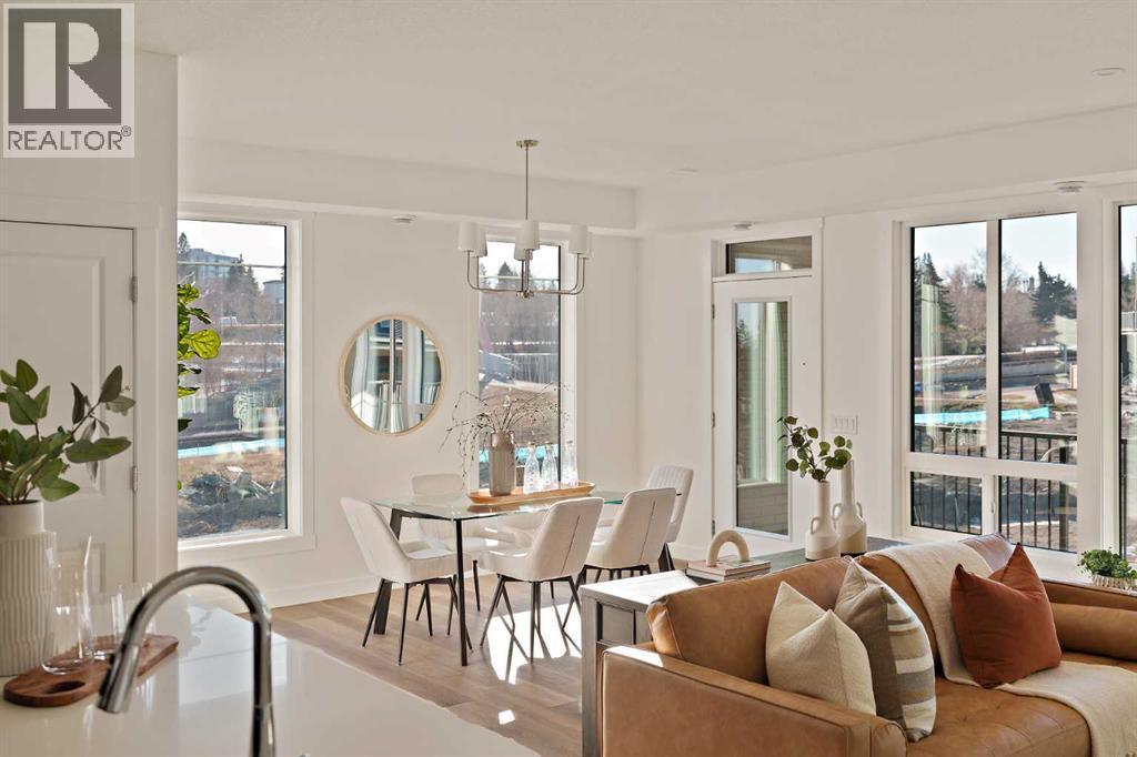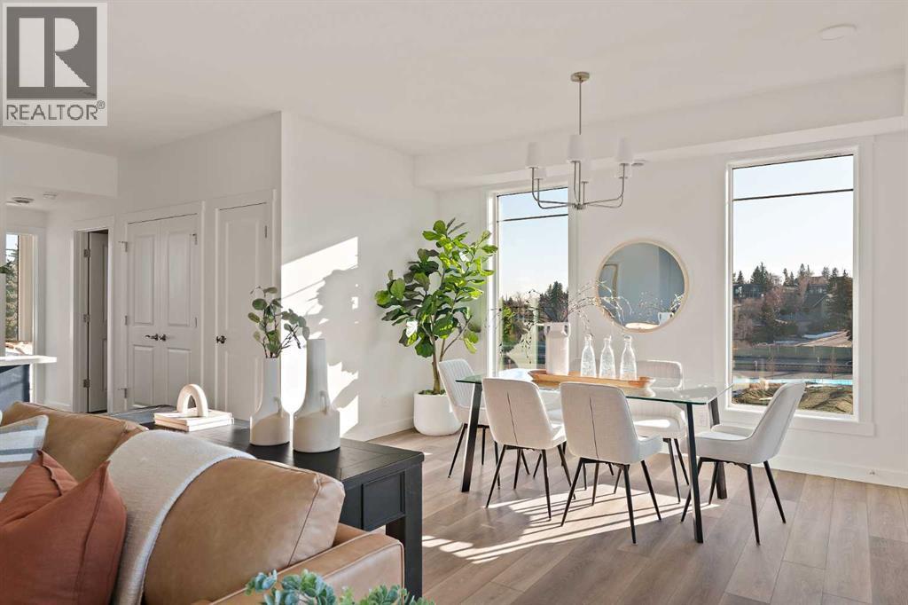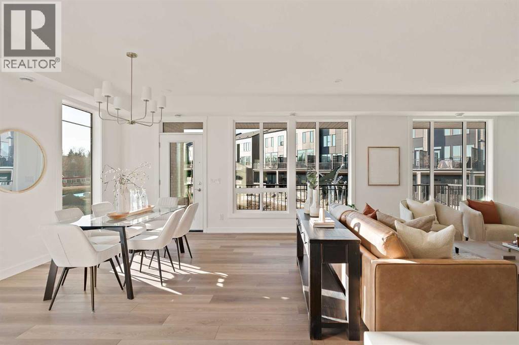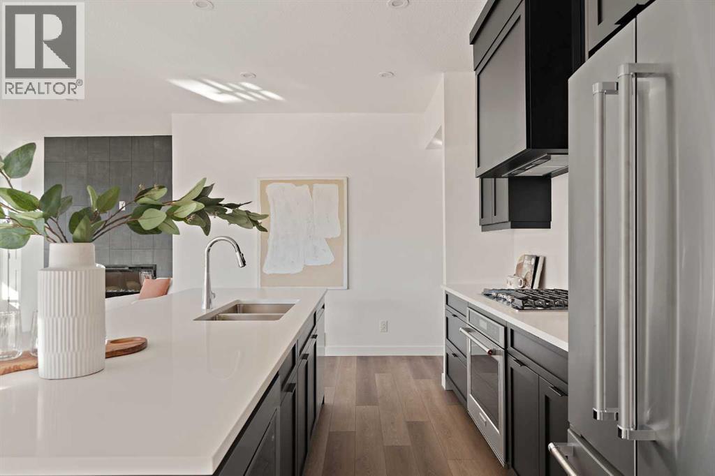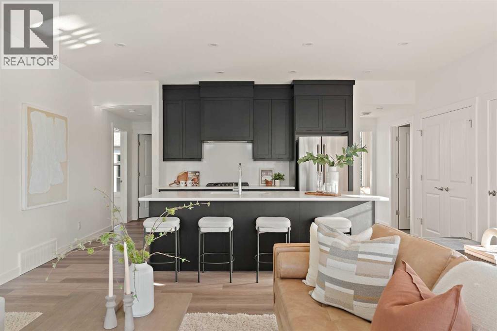 The Hyde at Crown Park is the perfect townhouse for those wanting single-level living without compromise. Featuring 3 bedrooms, 2 bathrooms, and nearly 1,400 ft2 of living space on one level with a private double attached and endless storage space, this home is perfect for those looking to downsize without compromising. Located in the heart of Crown Park overlooking a central park and just minutes from downtown Calgary, this brand new end-unit townhome perfectly combines maintenance-free living within a central urban setting. The beautifully designed main living area has the perfect open-concept design, making it ideal for entertaining and hosting. The kitchen anchors the main living space and opens perfectly to the living and dining areas with a wall of southwest-facing windows flooding the space with natural light. The timeless kitchen is complete with shaker cabinets, quartz countertops, and a suite of built-in appliances including a gas cooktop. The expansive living area has a central fireplace and ample seating space for six+ people, making entertaining a breeze. The large dining area can easily accommodate a table with seating for eight people and includes additional windows for added natural light. The primary suite is located at one end of the property, with laundry providing added privacy between the owner's suite and secondary bedrooms. A luxurious 4 pc ensuite with dual sinks and a walk-in shower as well as a large walk-in closet complete the primary suite. Two additional bedrooms provide added flexibility, with space for a guest bedroom + home office space or media room, and have their own full bathroom. The main living area is complete with a large laundry room with additional cabinets for storage and a countertop for added convenience. A ~26'x8' balcony provides the perfect outdoor living space - complete with a gas line, hose bib, and overlooking the park with optimal southwest exposure ensuring you're maximizing your sun and natural light all year lo ng. The lower level of the property provides access to the oversized private double attached garage and two expansive storage spaces provide the space you've been looking for! Located at Calgary's newest inner-city development, this brand new home provides a lock-and-leave lifestyle without compromise and includes full builder warranty + Alberta New Home Warranty. These rare designs don't come available often - this is your opportunity to get the bungalow-style home you were looking for that offers single-level living with a private garage and low fees that provide you with a maintenance-free lifestyle. (id:6769