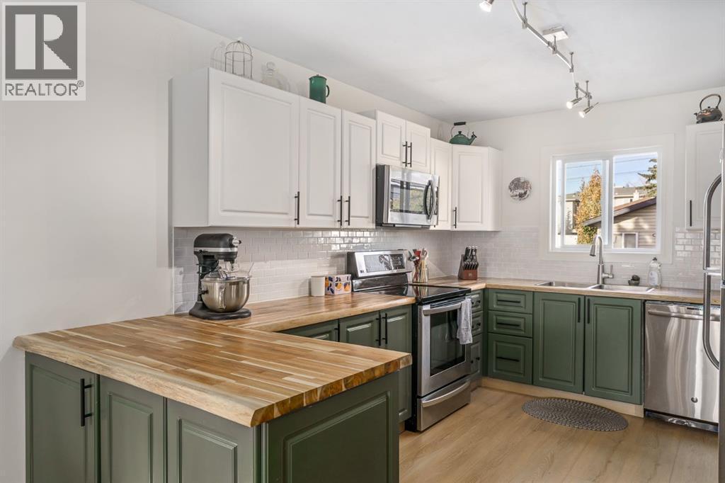 Fantastic home with great illegal basement suite. Great opportunity enjoy the benefit of live up, rent down, or investment property. This amazing property offers an ideal location, quiet cul de sac, close to all amenities and downtown Airdrie, making it a lucrative investment opportunity or perfect for young family. situated on a massive flat lot with large garage. Well maintained and pride of ownership shows throughout. Brand new vinyl flooring, updated Kitchen, bright and spacious living area. The primary suite features a convenient 3-piece ensuite and laundry. An additional 4- piece main bathroom plus the basement with full bathroom, 1 bedroom and additional laundry room. (id:6769