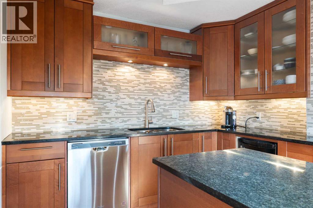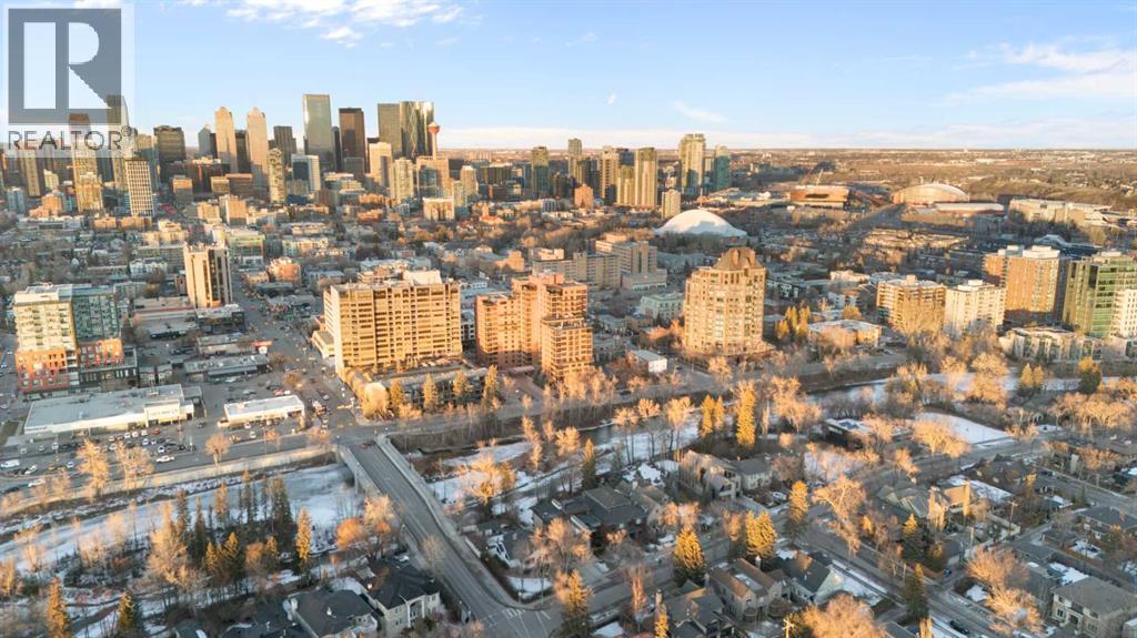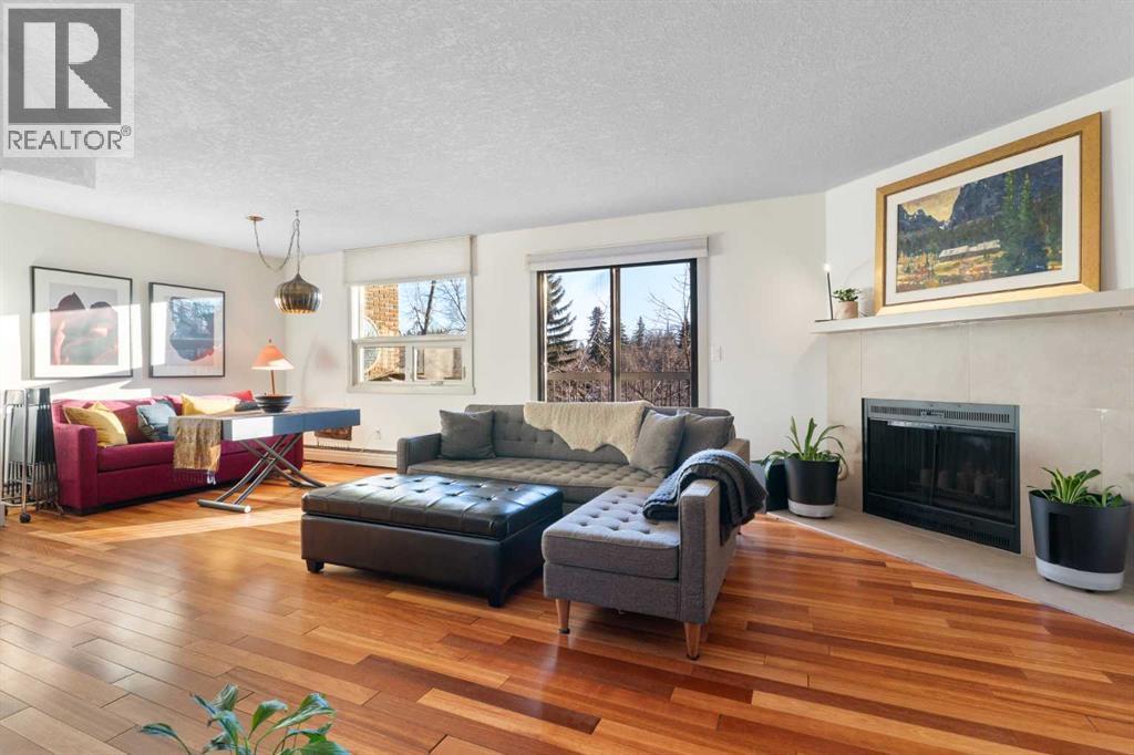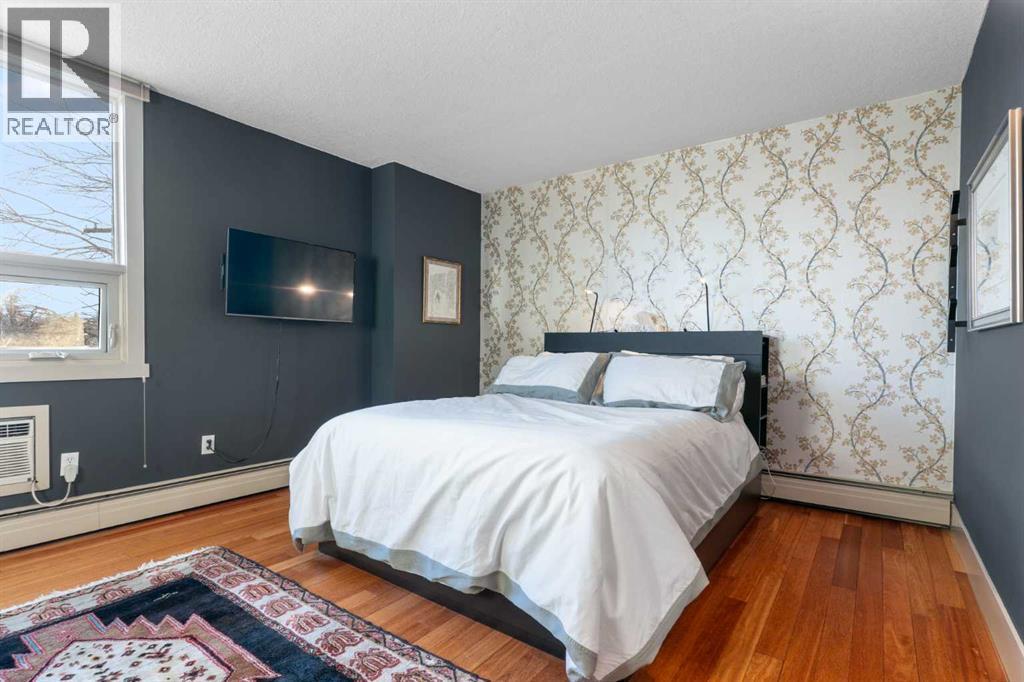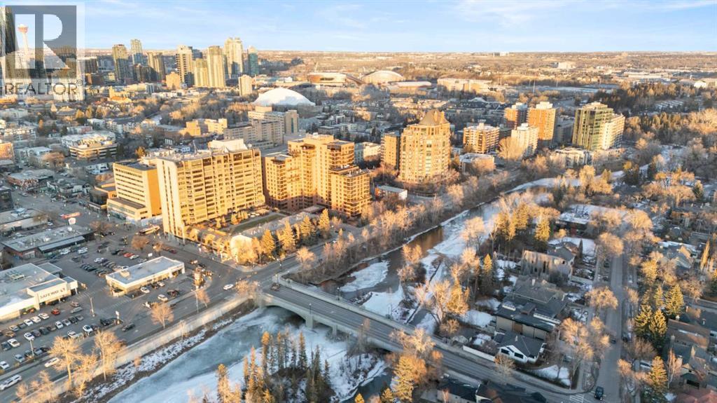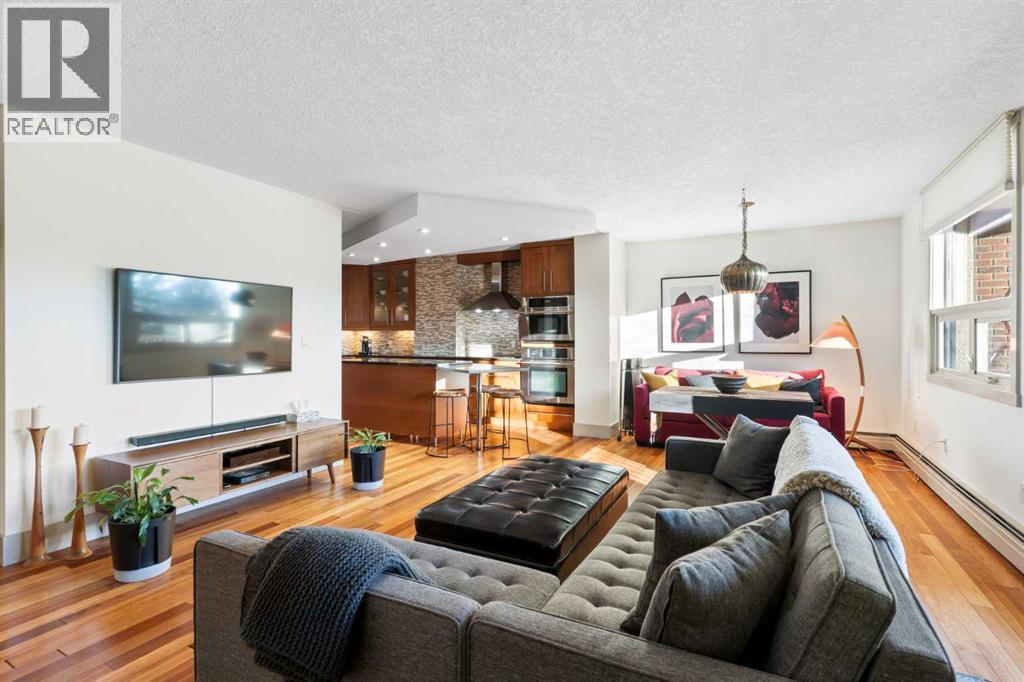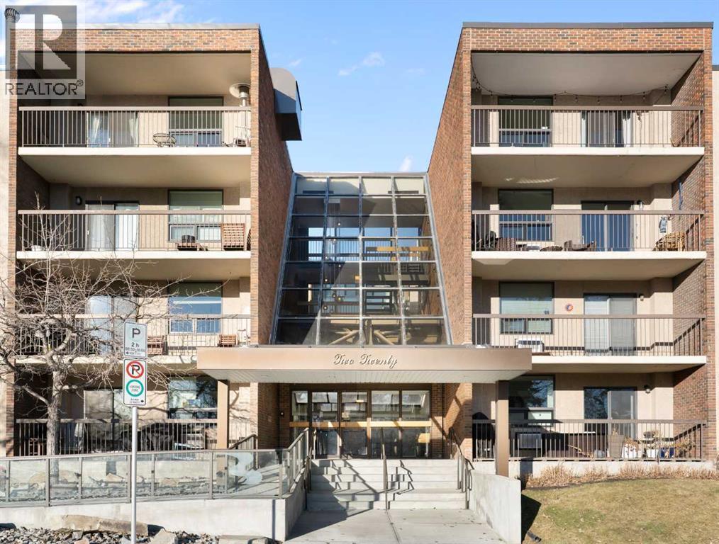 Welcome to this beautifully upgraded Mission condo with stunning, year-round views of the Elbow River. Offering just under 1,200 sq. ft. of well-designed living space, this home perfectly blends nature and urban convenience with river pathways, shops, and restaurants just steps away. The chef inspired kitchen features stainless steel appliances, a statement range hood, separate appliance tower, granite and quartz countertops, and ample custom storage, all with views of the river. Warm hardwood flooring runs throughout the unit. Two spacious bedrooms easily accommodate king size beds, complemented by two fully updated bathrooms. Recent custom closet organizers, excellent maintenance, and move-in-ready condition complete the home. The well managed building showcases classic mid-century modern charm and includes secured underground parking and a separate storage locker. (id:6769