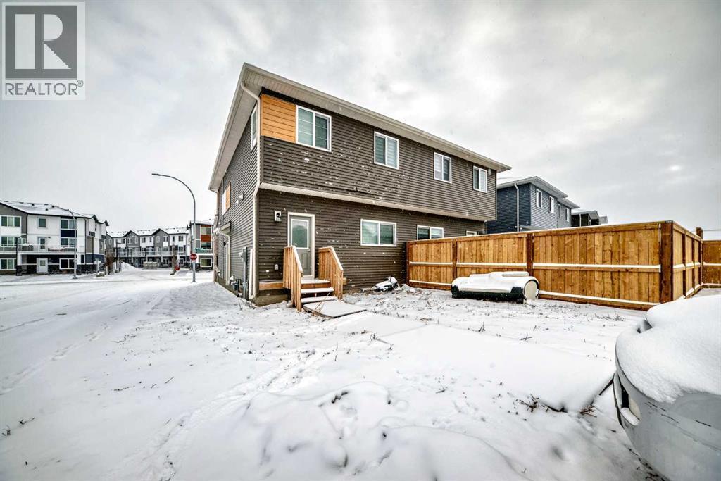 Welcome to this beautifully designed 2023-built semi-detached duplex offering approximately 1,649 sq. ft. of well-planned living space located in the vibrant and fast-growing community of Cornerstone. Situated on a premium corner lot, this home offers extra natural light, added privacy, and excellent long-term value.The open-concept main floor features 9-foot ceilings and a bright, spacious layout ideal for modern living and entertaining. The fully upgraded kitchen is the heart of the home, complete with a large island, upgraded cabinetry, and stylish finishes, seamlessly flowing into the living and dining areas.Upstairs, you will find three generously sized bedrooms along with a versatile bonus area, perfect for a family room, home office, or play space. The layout is thoughtfully planned to provide both comfort and functionality for everyday living. The basement offers a separate side entrance and is currently unfinished, providing a blank canvas for future development to suit your needs. Back alley access adds convenience and potential for future garage development.Located close to schools, parks, shopping, and with convenient access to Stoney Trail, Cornerstone is a well-planned community known for its excellent connectivity and family-friendly environment.This move-in-ready duplex is an excellent opportunity for homeowners and investors alike. Don’t miss your chance to own a modern, upgraded home in one of the city’s most desirable new communities. Call your realtor today to book private showing today!NOTE: There is minor hail damage on back side , owner will get it fixed before closing. (id:6769