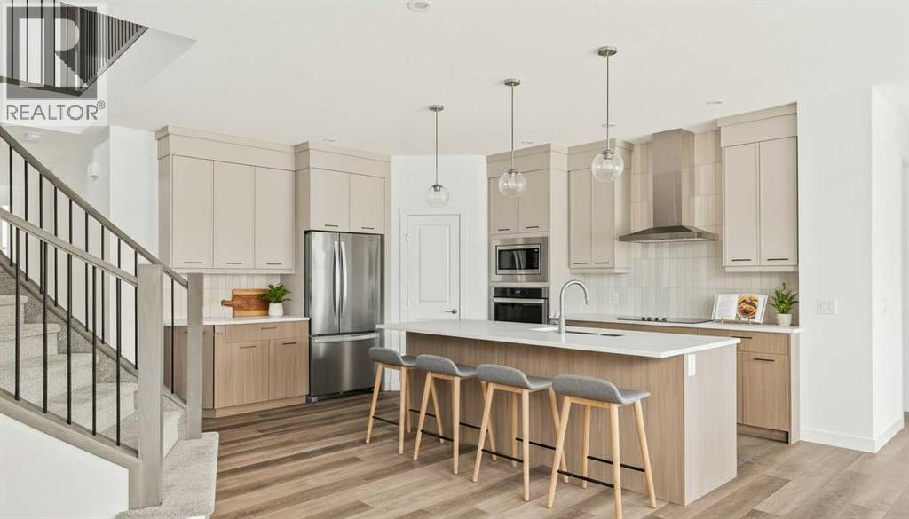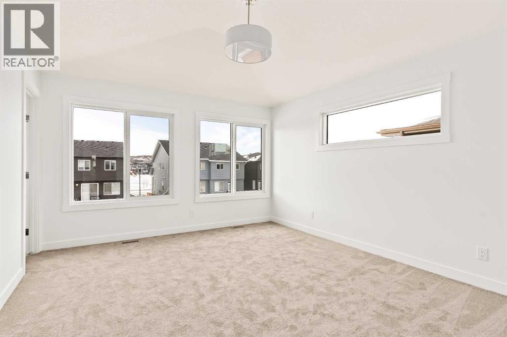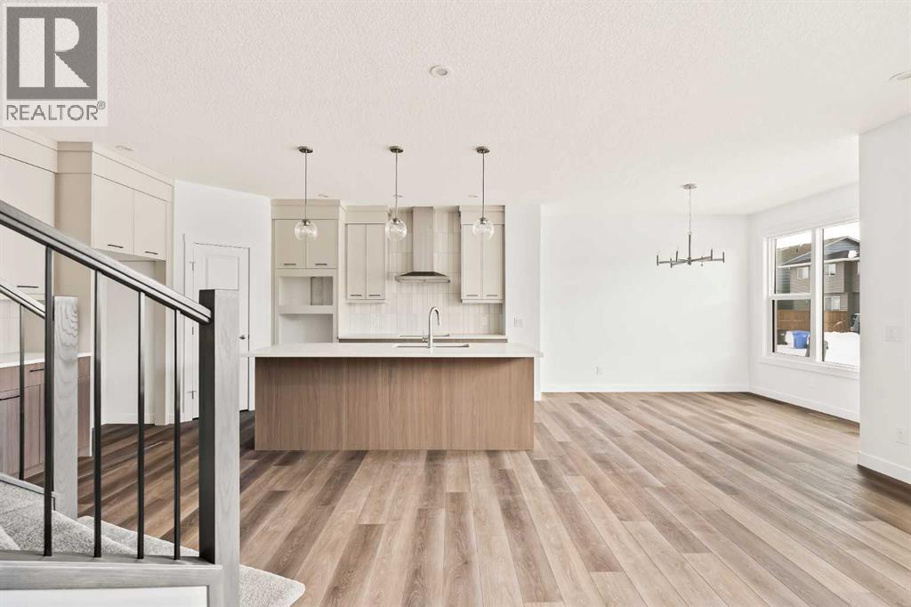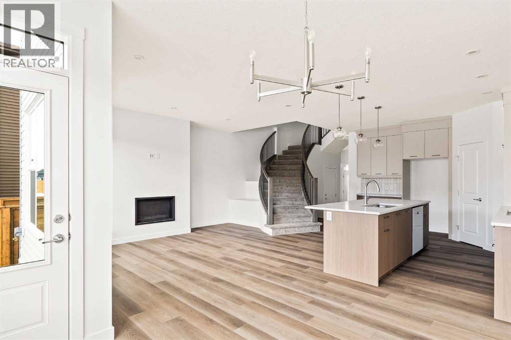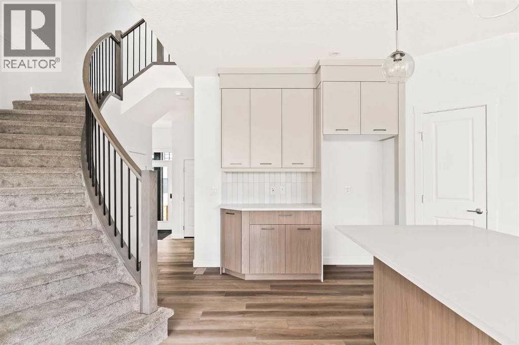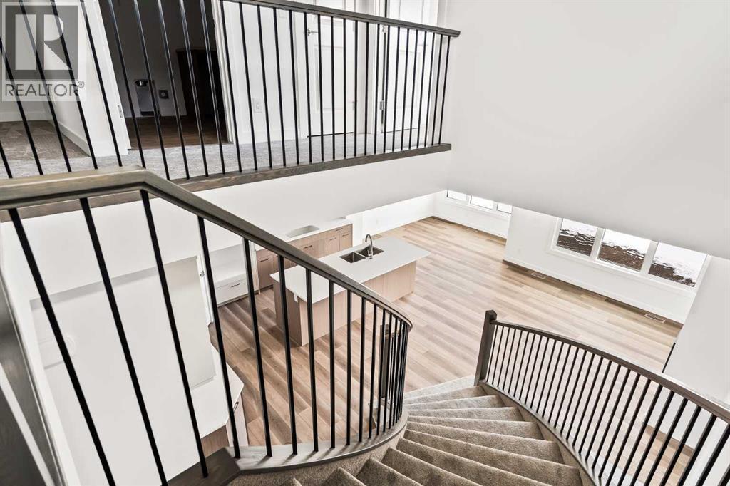 Introducing the Robson 24 by Brookfield Residential - a beautifully designed, fully move-in ready family home showcasing the modern Prairie elevation and situated on a large conventional lot (not zero lot line)! Thoughtfully planned with over 2,200 sq. ft. of developed living space above grade, this home perfectly blends style, function, and flexibility for today’s family lifestyle. The grand front foyer welcomes you with a sense of space and light, while the open-concept layout ensures seamless flow between the living, dining, and kitchen areas. The main level offers a spacious living area with a design that is perfect for entertaining. The kitchen is complete with an upgraded appliance package including a built-in chimney hood fan, built-in oven & microwave and a gas cooktop. The kitchen overlooks both the living and dining areas with a central fireplace in the great room providing the perfect space for cozy winter nights. A wall of windows across the back of the home allows for natural light from the west-facing backyard to flood the space with sunshine all day long. The main level is complete with a bedroom and full bathroom - perfect for a guest room, multi-generational living or easily can be converted to a home office space. At the heart of the home, a striking spiral staircase becomes an architectural centerpiece - a rare design feature that elevates this home beyond the ordinary. Upstairs, the curved staircase leads to a central bonus room that smartly separates the primary suite from the secondary bedrooms, offering privacy and a natural flow to the upper level. The primary retreat features a spa-inspired 5-piece ensuite with a private water closet, dual sinks, a soaker tub, and a walk-in shower, along with an expansive walk-in closet. Two additional bedrooms, a full bathroom, and a convenient upper-floor laundry room complete the second level. The undeveloped basement offers a private side entrance and awaits your creative vision - perfect for a future le gal suite (subject to municipal approval), home gym, or media space with 9' foundation walls making development that much easier for a brighter and more open space. Laundry rough-ins with sink hookups are already in place for added convenience. Outside, the west-facing backyard is ideal for soaking up the sun and provides the perfect outdoor retreat while keeping the main living areas bright year-round. Situated on a large conventional lot, this home has a traditional side yard and offers an incredible outdoor living space. Backed by Brookfield’s comprehensive builder warranty and the Alberta New Home Warranty Program, this brand-new home allows you to purchase with complete confidence. With its timeless finishes, distinctive architectural details, and move-in-ready convenience, the Robson 24 is truly the perfect place to call home. (id:6769