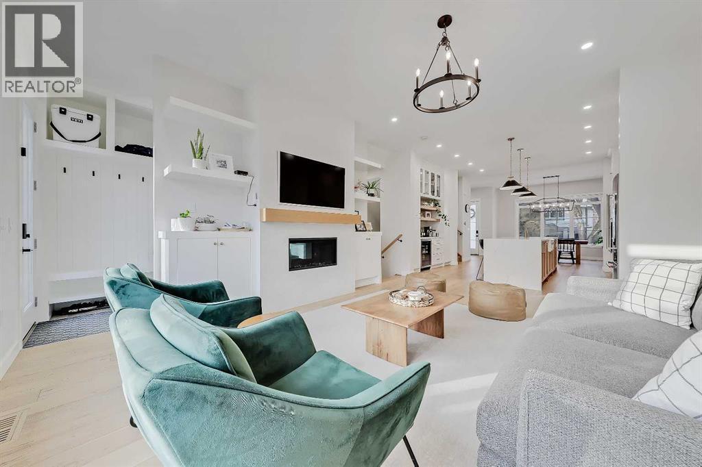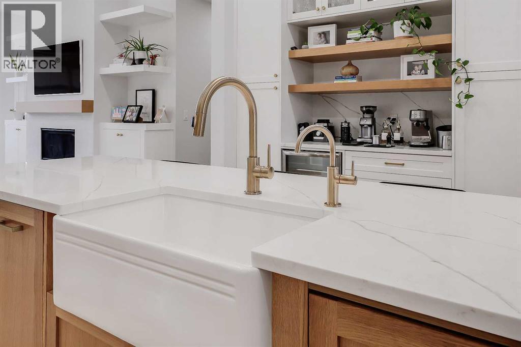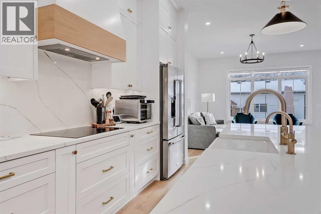 Set on a quiet, tree-lined street in Windsor Park, this semi-detached home delivers a refined blend of modern design, family-friendly function, and inner-city convenience. From the bright open-concept main floor to the spa-inspired primary suite and fully developed basement, every level has been thoughtfully designed to feel elevated yet comfortable. A chef-style kitchen with standout finishes, custom built-ins, a detached garage, and a private fenced SOUTH backyard come together to create a home that truly works for real life.The main floor is flooded with natural light and finished with wide-plank hardwood flooring throughout. The living room is anchored by custom built-ins, wainscotting, electronic blinds, and a sleek gas fireplace, creating a warm and inviting focal point. The kitchen is a true showpiece, featuring full-height white cabinetry with oak accents, quartz countertops, premium stainless steel appliances, including an INDUCTION cooktop, INSTANT HOT WATER tap, and a large island with seating. A statement apron-front farmhouse sink adds both character and function, while open shelving and thoughtful storage keep the space feeling clean and intentional. The open dining area sits beside oversized windows overlooking the front yard, making the entire main floor feel bright, connected, and ideal for entertaining.Upstairs, the primary bedroom offers a calm, private retreat with large windows, custom closet storage, and a luxurious ensuite. The ensuite is beautifully appointed with dual vanities, a freestanding soaker tub, and a glass-enclosed STEAM shower finished with timeless tile. Additional bedrooms are bright and perfectly suited for kids with custom wall details and quick access to the modern 4-pc main bath. A spacious bonus room offers ample space to spread out and the laundry room completes this space.The fully developed basement adds exceptional flexibility with a spacious family room, built-in media wall, and wet bar, creating an ideal space f or movie nights or casual entertaining. A dedicated home GYM space and a fully equipped private OFFICE w/ built-in desk & storage are perfect for any family, while the additional bedroom and full bathroom make the lower level comfortable and functional. Outside, the fenced SOUTH backyard offers a low-maintenance outdoor space with a concrete patio and direct access to the detached garage.Windsor Park is one of Calgary’s most established inner-city communities, known for its mature tree canopy, wide streets, and strong sense of neighbourhood. You’re minutes from Britannia Plaza, Chinook Centre, Glenmore Trail, and Elbow Drive, making daily commuting and errands effortless. Nearby parks, playgrounds, and pathways offer easy access to green space, while respected schools, transit options, and quick connections to downtown add everyday convenience. It’s a location that blends quiet residential living with exceptional access to the city.Polished inner-city living in a location that continues to deliver. (id:6769