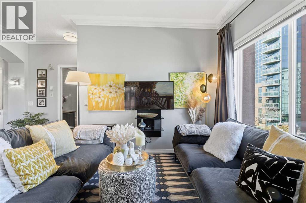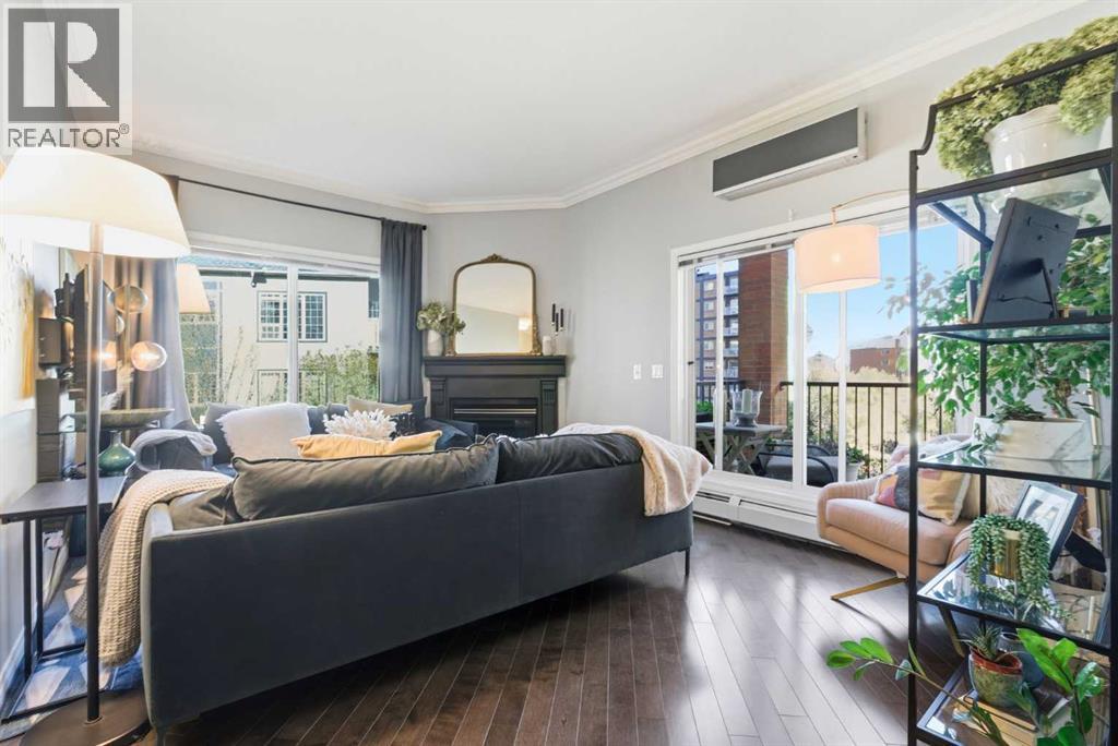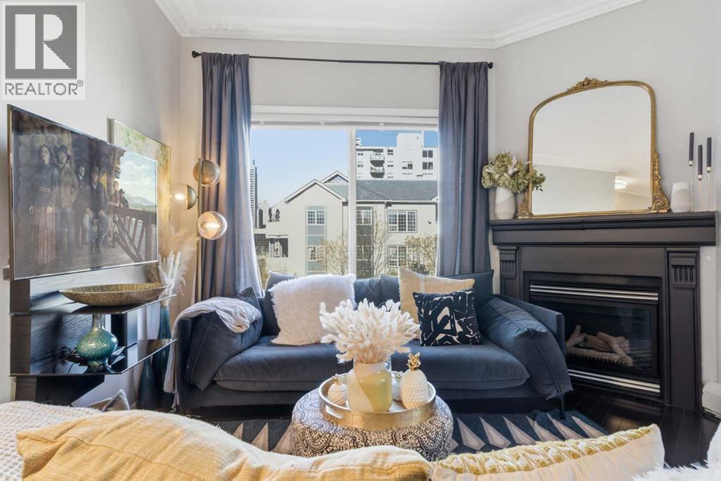 Experience sophisticated urban living in this beautifully upgraded 2-bedroom, 2-bathroom executive condo, ideally located with direct +15 access to GoodLife Fitness, London Drugs, top restaurants, and just steps from the boutiques and nightlife of 17th Avenue. Enjoy a highly walkable lifestyle with easy access to downtown and the Bow River Pathway system. This light-filled, modern residence features designer lighting, expansive windows, and an open-concept layout. The chef-inspired kitchen boasts a sleek peninsula island with eating bar, premium stainless steel appliances, classic subway tile backsplash, and timeless white cabinetry. An elegant dining area flows into the spacious living room, complete with a stylish fireplace and breathtaking panoramic city views. Step onto the covered balcony to enjoy morning coffee or evening sunsets year-round. The primary suite offers a luxurious retreat with a full private ensuite, while the second bedroom and full guest bath provide comfort and flexibility. Additional features include in-suite laundry, secure underground parking, and ample storage.Perfect for professionals or those seeking an upscale urban sanctuary—this home offers the ultimate in downtown luxury living. (id:6769