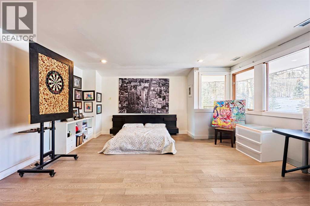 Judicial Sale – Sold “As-Is, Where-Is.” This property has been far more than a house to the family—it was the owner’s heart and soul. Over the years, substantial investment and thoughtful upgrades have been made to enhance both comfort and functionality, including three furnaces, heated basement floor, two hot water tanks and two air-conditioning units, providing year-round comfort.The home consists of six rooms in total, featuring a primary bedroom on the main level, one bedroom and an office on the upper level, three bedrooms with large windows in the walk-out basement. A significant structural improvement introduced contemporary interior stairs connecting the main and upper levels, expanding living and entertaining spaces while enhancing flow and security. The primary ensuite and the upper-level bathroom are currently under renovation.Set on a private 2.03 acre corner lot in a quiet cul-de-sac, the property is surrounded by mature trees and a serene natural setting. Inspired by Frank Lloyd Wright, this prairie-style walk-out bungalow encompasses approximately 3,733 sq.ft. of developed living space, with views from every room.Imagine waking up to quiet mornings and open skies, where rural charm meets modern convenience. This beautiful piece of land offers peaceful country living just minutes from Bragg Creek’s town centre, with effortless access to Kananaskis Country, outdoor recreation, and the stunning Rocky Mountains. (id:6769