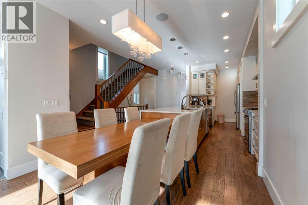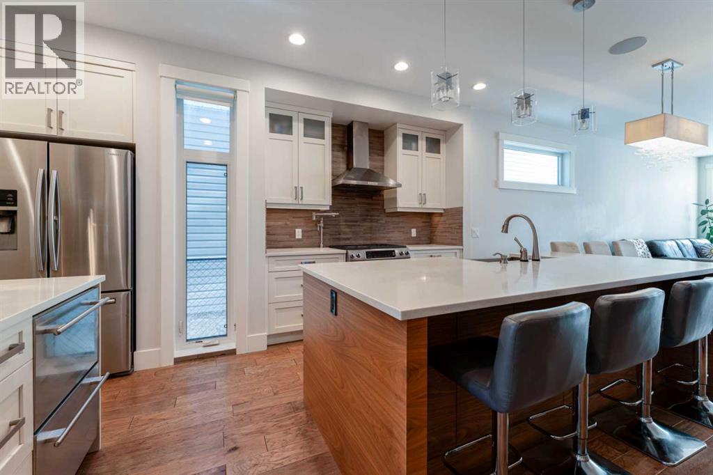 Check out the Virtual Tour of this exceptional custom-built home in Winston Heights. Perfectly positioned on a quiet street with quick access to downtown, Deerfoot Trail, schools, and shopping, this stunning three storey residence offers the ideal blend of luxury, functionality, and energy efficient space.Thoughtfully crafted with eco conscious features throughout, the home includes in floor heating on all levels, spray foam insulation, and triple pane heat deflecting windows. Each floor has dual zone temperature controls. Spanning approximately 3,200 square feet of fully finished living space, the open concept layout is flooded with natural light thanks to numerous windows and a sunny south facing backyard. The main floor welcomes you with a stylish front entrance featuring a built in bench beside a flexible office or study space. Wide plank hardwood flooring carries through the main and upper levels, leading into a beautifully designed living area with a sleek gas fireplace and custom built ins. The chef inspired kitchen is the heart of the home, complete with stainless steel appliances, quartz countertops, a gas range, extensive cabinetry, and a massive island with seating that is perfect for entertaining. Upstairs, the primary retreat is a true sanctuary, offering a luxurious five piece ensuite with double sinks, a large soaker tub, and an oversized glass steam shower. A spacious second bedroom, a full bathroom, and a conveniently located laundry room complete the second level. The third storey features a generous bonus or family room, a third bedroom, and another full bathroom, making it an ideal space for guests, teens, or a private retreat. The builder finished basement adds even more versatility with a cozy media or TV area, built in shelving and workspace, a fourth bedroom, and a full bathroom. To finish off the basement, you have a built-in hidden wine cellar. Meticulously maintained with a recently replaced new furnace and circulator heads for the in-fl oor heating that should last another 10-15 years. Step outside to a backyard with a well designed garden bed surround an oversized deck accessed directly from the living room sliding doors. The fully fenced yard offers both beauty and privacy, while the double detached garage features dual sided doors, with an additional door to drive through and park a well sized RV, trailer or more. With four bedrooms, five bathrooms, exceptional craftsmanship, and high end finishes throughout, this home is a rare opportunity for those seeking modern luxury, comfort, and sustainability in one of Calgary’s most desirable inner city communities. Book your private showing today. (id:6769