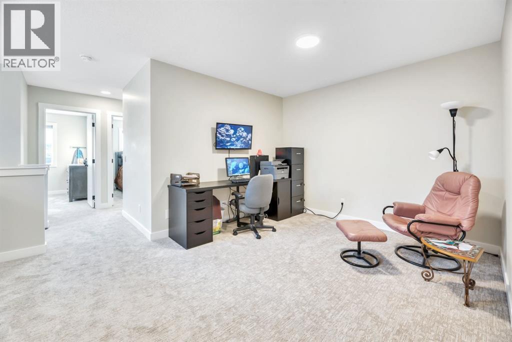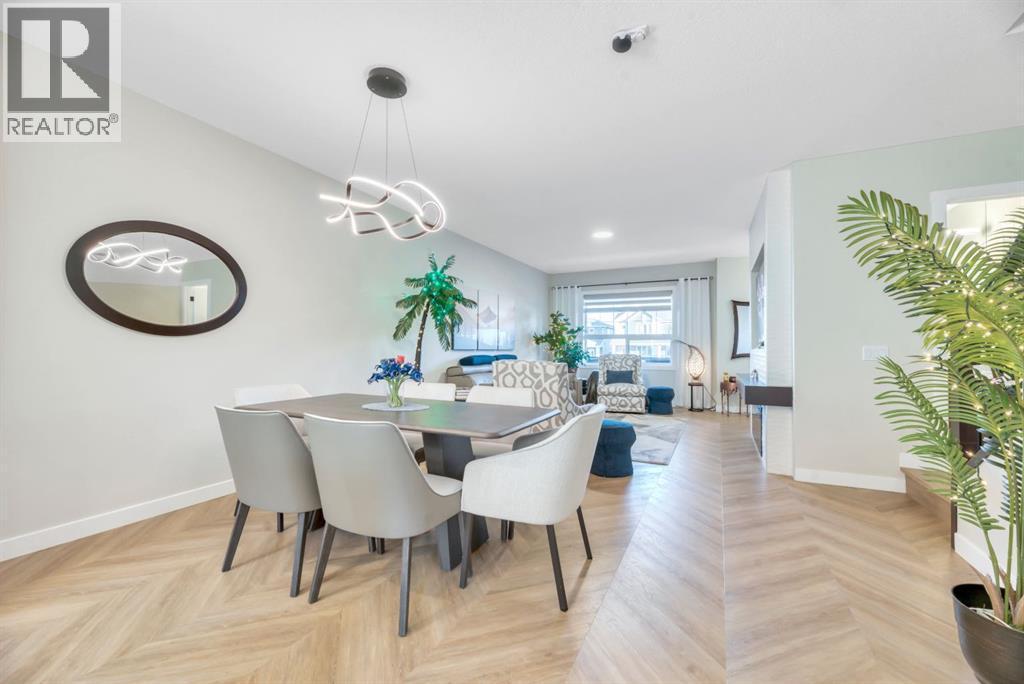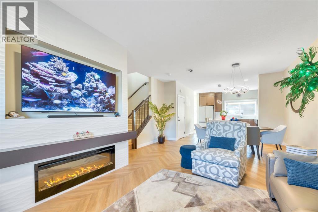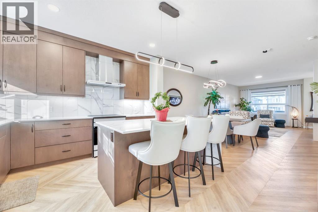 INCREDIBLE PRICE! Live Up in Luxury and have your home work for you down! Immensely upgraded and fully finished semi-detached home with a LEGAL BASEMENT SUITE and double detached garage, ideally located in the growing community of Pine Creek in Calgary's beautiful SW. Modern Designed with both style and functionality in mind, this home offers an exceptional opportunity for homeowners, investors, or multi-generational living.The main residence showcases a thoughtfully upgraded interior featuring CHEVRON FLOORING on the main level, a stunning WATERFALL ISLAND, ceiling-height HIGH END CABINETRY, tiled backsplash, under-cabinet lighting, and upgraded appliances—all anchored by a modern, open-concept layout. A recessed tiled TV wall with electric fireplace and mantle adds warmth and architectural interest to the living space. Black plumbing fixtures and matching door hardware provide a cohesive, contemporary finish throughout.Upstairs, enjoy upgraded carpet, custom cabinetry in the pantry and primary closet, upgraded window coverings, and beautifully finished bathrooms. The spa-inspired upper main bath features tiled floors, a fully tiled walk-in shower with waterfall rain head and slide bar, sliding glass door, and upgraded vanities with Banjo countertops. The primary ensuite has a relaxing bath/shower in addition to the spacious countertop and extra storage in the vanity. All bathrooms—including the powder room—offer upgraded cabinetry with additional drawers and easy-clean upgraded toilets.The maintenance-free backyard is fully fenced and complete with a cement patio and gas line for BBQ, ideal for outdoor enjoyment. The double detached garage is insulated, drywalled, and equipped with extra storage shelving, with the added benefit of joined garages allowing a full 4’ walkway to the rear alley. A 50-amp breaker for future EV charging, electrical hookup for A/C, keyless entry, Ring doorbell, and upgraded lighting package further elevate the home’s value.The LEGAL basement suite is equally impressive, finished with luxury vinyl plank flooring throughout (including stairs), separate utility meters, and a private side entrance with a poured sidewalk leading to the front walkway—offering excellent rental potential or space for extended family.A rare combination of high-end finishes, smart upgrades, and income potential, thoughtfully designed, this turnkey opportunity is not to be missed. (id:6769