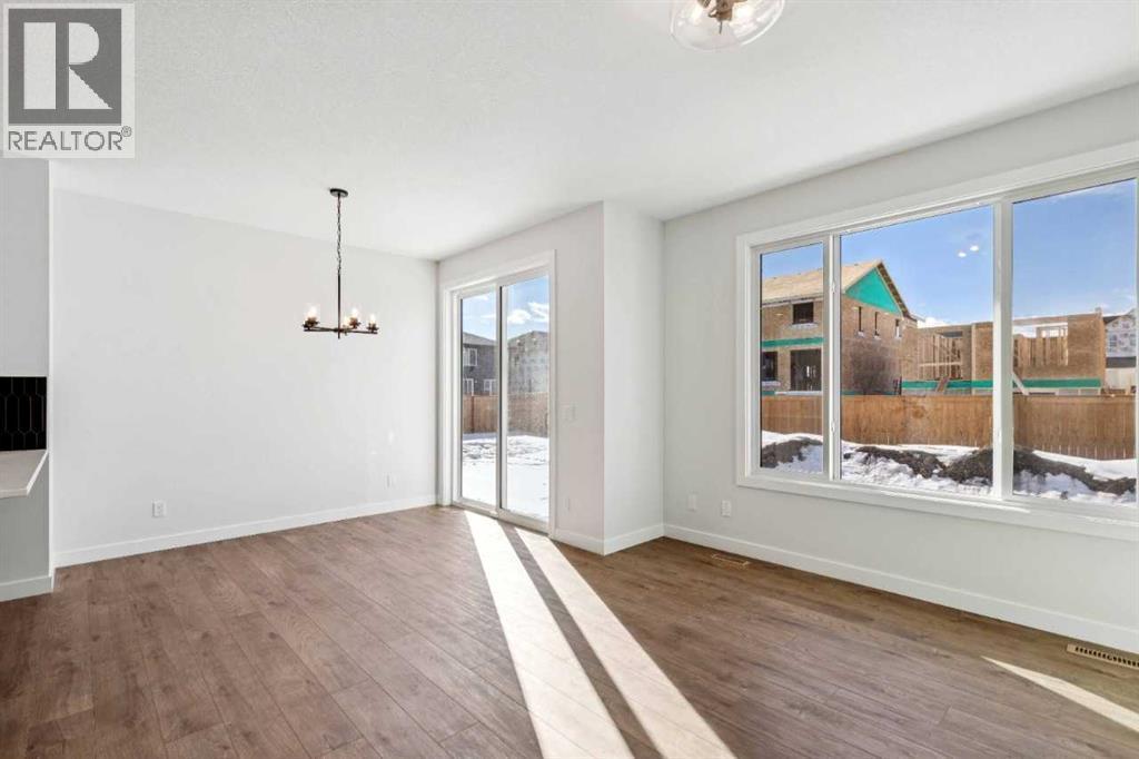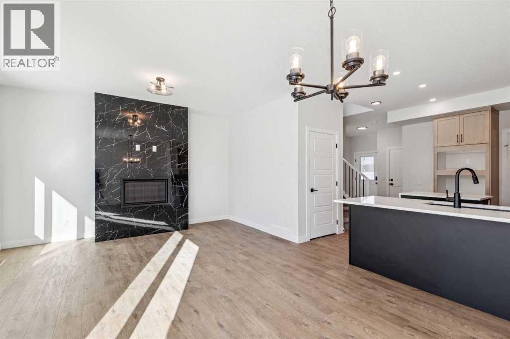 Welcome to the Valmore 4 by Sterling Homes Calgary. Built by a trusted builder with over 70 years of experience, this home showcases on-trend, designer-curated interior selections tailored for a home that feels personalized to you. Energy efficient and smart home features, plus moving concierge services included in each home.Built to 2025 specifications, this home features LVP throughout the main floor and all wet areas, triple-pane and additional windows, and a gas fireplace with floor-to-ceiling tile. The executive kitchen offers built-in stainless steel appliances, gas cooktop, fridge with water and ice, a peninsula layout with waterfall island edge, walk-in pantry, and Quartz countertops with undermount sinks. The primary bedroom includes a 5-piece ensuite with soaker tub, tiled walk-in shower with niche, and stylish finishes. With 9' basement wall height and a BBQ gas line rough-in, this home delivers comfort, efficiency, and modern design. This energy-efficient home is Built Green certified and includes triple-pane windows, a high-efficiency furnace, and a solar chase for a solar-ready setup. With blower door testing that may be eligible for up to 25% mortgage insurance savings, plus an electric car charger rough-in, it’s designed for sustainable, future-forward living. Featuring a full range of smart home technology, this home includes a programmable thermostat, ring camera doorbell, smart front door lock, smart and motion-activated switches—all seamlessly controlled via an Amazon Alexa touchscreen hub. Some photos are representative. (id:6769