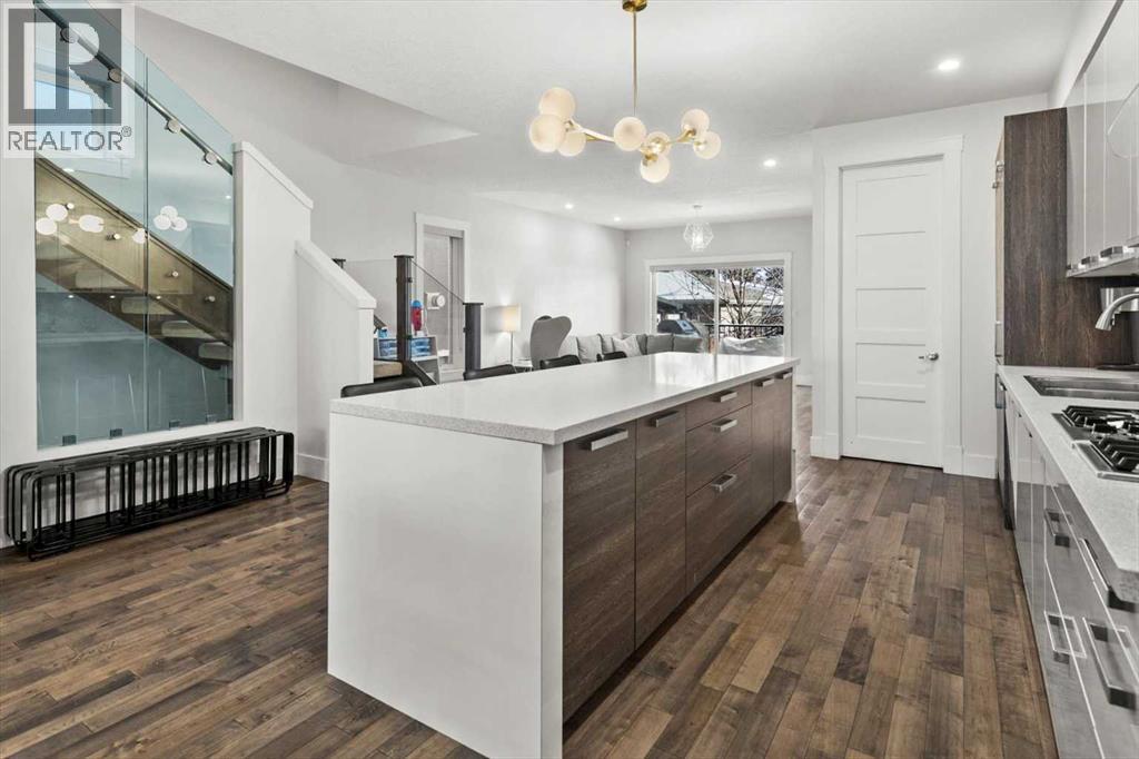 Enjoy luxurious modern inner city living in the heart of friendly Killarney. Offering an incredible 3379 sqft of living space with 5 bedrooms and 3.5 bathrooms, high ceilings, generous spaces, and an exceptional setting across from a large green space and a highly regarded school. The main floor features a stylish living room with a chic Montego fireplace, an open dining area ideal for large gatherings, and a sleek kitchen equipped with European cabinets, a large quartz island with seating, gas cooktop, built in refrigerator, and walk in pantry. A spacious family room opens to a sizeable deck perfect for outdoor dining and relaxation, overlooking a private backyard, while a rear mud room and detached two car garage with alley access add everyday ease. Upstairs, the primary suite is a true retreat with vaulted ceilings, a private balcony, and a shared fireplace connecting the bedroom to a luxurious ensuite with multi-head rain shower, dual sinks, a deep soaker tub, and enclosed toilet. There are two more sunny bedrooms, a family washroom and a laundry room with wash sink on the upper level. The lower level offers a versatile recreation room well suited for a home gym, playroom, media space, or games area, along with two additional bedrooms, storage and a full bathroom. Located in a vibrant, family friendly neighbourhood with an active community centre, excellent schools, nearby shops and services, and convenient access to major roadways, this home delivers modern comfort and an outstanding lifestyle. (id:6769