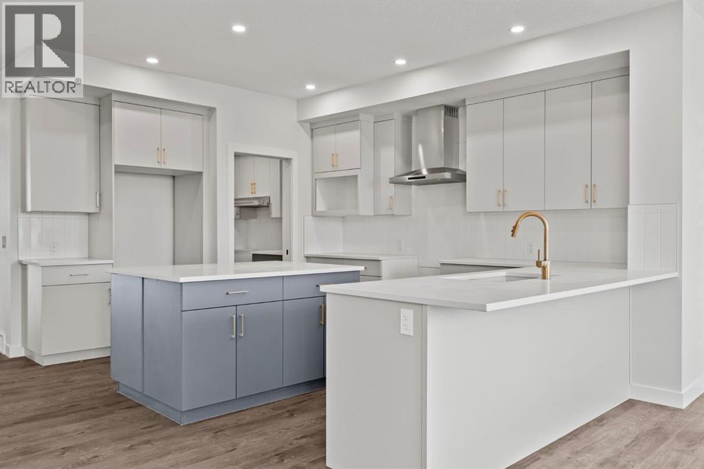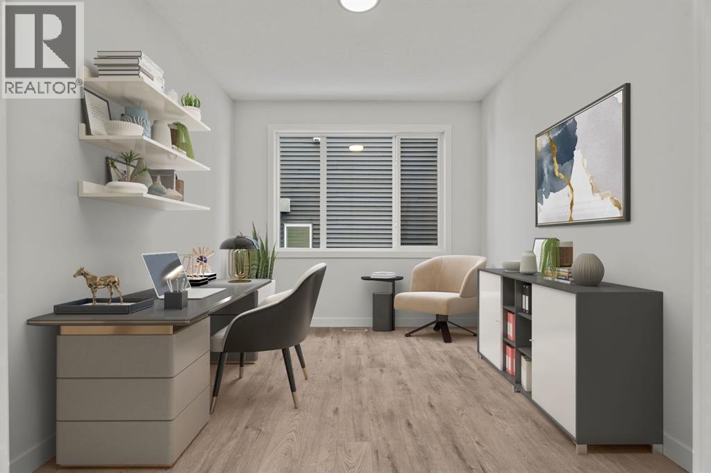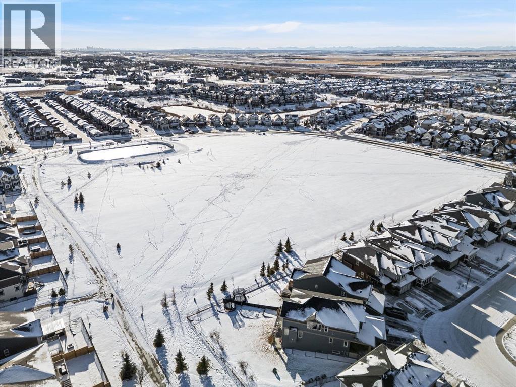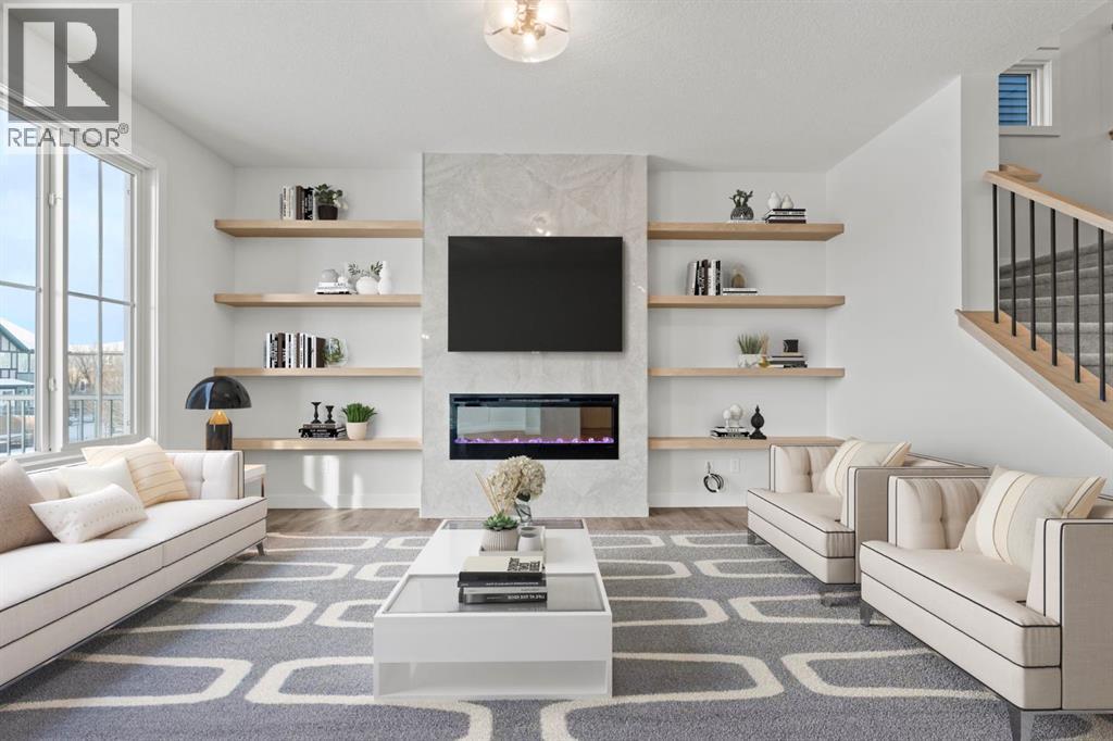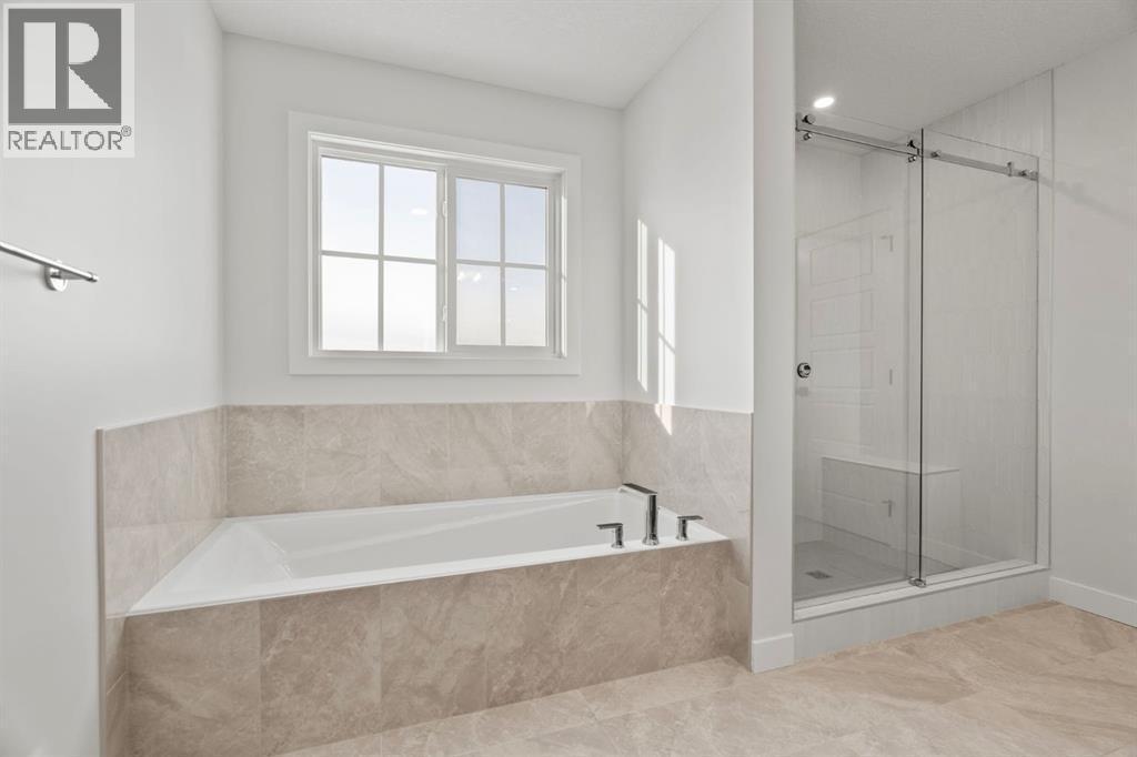 Welcome Home. Built by award winning home builder Sterling Homes “Pierce 2” model at 2220 Lancaster Heights SE, is a beautifully designed home offering 2,541 sq ft, 4 bedrooms, 4 bathrooms, and a layout that blends modern style with everyday practicality.The main level is flooded with natural light and showcases wide plank flooring, oversized windows, and a seamless open-concept design. The kitchen is a true showpiece, featuring full-height cabinetry, quartz countertops, a large central island, stainless steel appliances, chimney hood fan, and elegant gold hardware and faucet. A highly desirable spice kitchen with gas line and pantry adds exceptional functionality for cooking and entertaining. The dining area is anchored by a striking custom wall detail and modern lighting, creating a warm yet elevated space for gatherings.The living room is both stylish and inviting, centered around a sleek electric fireplace with built-in shelving, while large windows frame peaceful views of the surrounding greenspace. A main floor flex room with double pocket doors offers versatility as a home office, guest room, or playroom, complemented by a full main floor bathroom—ideal for multi-generational living.Upstairs, the thoughtfully designed layout includes four bedrooms, highlighted by a rare dual primary bedroom configuration. The main primary retreat features a luxurious 5-piece ensuite with dual sinks, tiled shower, private water closet, and ample storage, while the second ensuite is finished with tiled shower walls and modern fixtures. A vaulted ceiling bonus room provides an airy second living space, perfect for relaxing or family movie nights, and upper-level laundry adds everyday convenience.Additional features include 9’ basement ceilings, side entrance, maple railing with iron spindles, tile flooring in bathrooms and laundry, and a rear 13’6” x 9’ deck overlooking green space—perfect for enjoying sunny afternoons and peaceful views.Built with Sterling Homes’ Smart Ene rgy Package, this BUILT GREEN® certified home offers improved efficiency, comfort, and long-term savings. A fantastic opportunity to own a brand new, thoughtfully upgraded home in a growing southeast Airdrie community. (id:6769