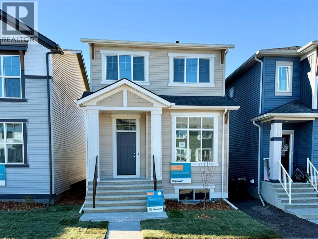 Introducing the beautifully crafted Lyall floor plan—where contemporary design meets everyday functionality in the growing southeast community of Hotchkiss. From the moment you step inside, the 10-foot main floor ceilings and wide plank luxury vinyl flooring set the tone for an inviting, open-concept layout that’s equal parts stylish and practical. At the front of the home, a flexible bonus room offers endless possibilities—whether you need a quiet office, a creative space, or a cozy reading nook. The heart of the home unfolds at the back, where a bright and spacious living area is anchored by an eye-catching kitchen. Thoughtfully finished with a mix of modern cabinetry and natural wood tones, it features quartz countertops, stainless steel appliances, classic subway tile, and an oversized island with seating—perfect for casual breakfasts or hosting friends and family. The adjacent dining area easily accommodates large gatherings, making this home an entertainer’s dream. Upstairs, a central loft adds a second family space or media room, separating the primary retreat from the kids' rooms. The primary suite is a true escape, complete with a walk-in closet and spa-like ensuite with dual sinks, the perfect spot to start or end your day. Two additional bedrooms, a full 4-piece bath, and an upper laundry room complete the level with comfort and convenience. The side entrance provides options in the future for a basement suite (A secondary suite would be subject to approval and permitting by the city/municipality) providing the perfect spot for extended family or rental income. **This home also comes complete with full front and backyard landscaping, including sod, mulch on the side yards, and trees/shrubs in the front as per community guidelines. Hotchkiss is one of Calgary’s newest southeast communities, offering the perfect blend of quiet residential living and urban accessibility. With quick connections to Stoney Trail, 52nd Street, and the South Calgary Health Campus , commuting is a breeze. This growing neighbourhood features thoughtfully designed green spaces, winding walking paths, and future planned amenities including parks, schools, and local shops—all designed to create a connected and vibrant community atmosphere. Whether you're a first-time buyer, growing family, or savvy investor, Hotchkiss offers value, space, and the promise of long-term growth in a fresh new part of the city. This is more than just a home—it’s a chance to be part of something new and exciting. (id:6769