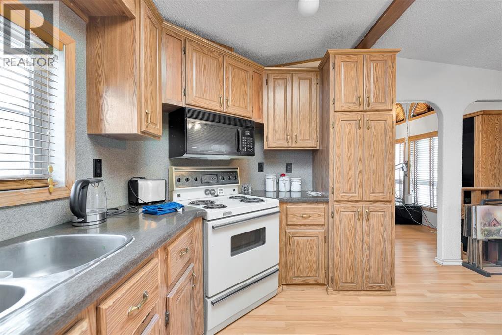 A fantastic opportunity for first-time buyers or those looking to enter the market to own a detached home under $325,000. Designed for year-round comfort and peace of mind, this home is equipped with air-conditioning and winterized heat tape for cold-weather protection. This well-designed 1,200 sq. ft. bungalow-style modular home offers 3 bedrooms, 2 full bathrooms, and a bright open-concept layout, situated on fully titled and owned land. Vaulted ceilings and large windows fill the living space with natural light, while the oak kitchen features a skylight, generous pantry, and built-in cabinetry—perfect for everyday living and entertaining.The primary bedroom is a relaxing retreat, featuring a spa-inspired open ensuite design with a two-person jetted soaker tub, separate shower, private toilet area, and dedicated vanity space. Two additional bedrooms are located at the opposite site of the home along with full main bathroom that provides private and comfortable space for family or guests.A rear entrance with built-in storage leads to a separate laundry room with front-load washer and dryer. The property features a beautifully landscaped yard with apple tree and cherry bushes to enjoy in the summer, along with patio, gazebo and fire pit and two storage sheds for added functionality and outdoor living.Additional highlights include no condo fees or pad rent, asphalt parking, nearby walking paths and green spaces, plus quick access to Stoney Trail, Deerfoot, Peigan Trail, Downtown, Costco, and amenities like schools and restaurants. Move-in ready and offering exceptional value—this is a fantastic entry into detached homeownership. (id:6769