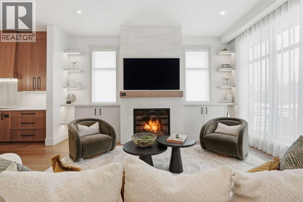 Nestled in the heart of Serenity at Heritage Pointe and backing onto a beautifully landscaped greenspace, this luxurious 3 bedroom, 2.5 bath villa with the Sydney floorplan has been carefully crafted by RareBuilt Homes & offers over 3200 sq ft of exceptional living space. The open concept main floor impresses with engineered wide plank hardwood, custom tile detailing, 10’ ceilings, and a spacious great room with large sliding doors that open to a covered rear deck and private fenced yard. The chef inspired kitchen is equipped with a full KitchenAid appliance package, including a six burner gas cooktop, custom hood fan, refrigerator/freezer, dishwasher, and built in oven with convection microwave. A generous island, ample storage, and thoughtful layout make this kitchen ideal for both everyday living and entertaining. A stylish home office with beam detailing adds both character and functionality. The primary suite provides a serene retreat, complete with a spa inspired 5 piece ensuite featuring heated floors, a freestanding soaker tub, an oversized shower, and a custom walk in closet. The fully finished basement extends the living space with a large recreation room, two additional bedrooms, a full bath, and a roughed-in theatre room that can be modified to wherever your imagination takes you. Additional highlights include a 3 stop elevator, tilt and turn triple glazed windows, 6 standard solar panels, a high efficiency furnace, heat pump, air conditioning, and radiant in floor heating—ensuring year round comfort and energy efficiency. Outside, enjoy a covered composite rear deck with custom aluminum railing plus a fully landscaped & irrigated yard including ornamental fencing and gate in the rear yard providing access to 2 km of local pathways. Parking is effortless with a fully finished and painted oversized double attached garage complete with epoxy flooring, aggregate driveway and EV charger readiness. Enjoy the freedom of full landscape maintenance and snow remo val plus close proximity to Heritage Pointe Golf Club, LaunchPad Golf at Heritage Pointe & easy access to Calgary or Okotoks via highway 2 or 2A. (id:6769