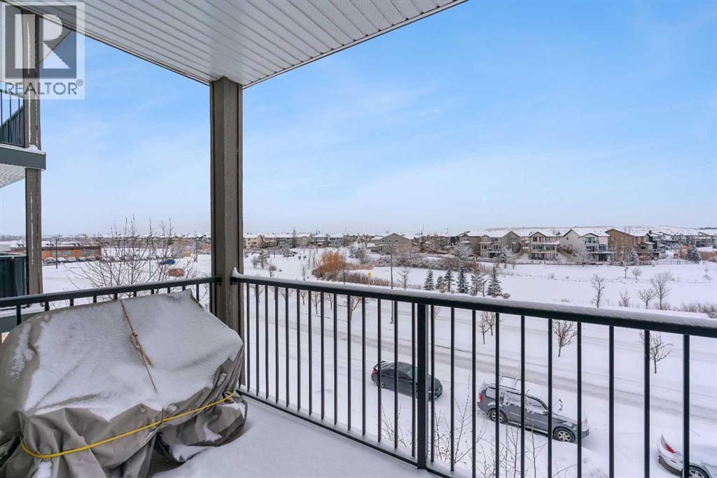 Welcome to this light-filled and beautifully designed 2-bedroom, 2-bathroom condo in the highly sought-after community of New Brighton. Offering a fantastic layout with 9-foot ceilings and triple-pane windows, this bright and airy unit is filled with natural light and designed for comfortable, modern living. The open-concept kitchen is a true standout, featuring a spacious 7-foot island with quartz countertops, stylish tile backsplash, stainless steel appliances, and ample cabinetry—perfect for cooking, entertaining, or casual dining. The kitchen flows seamlessly into the dining and living areas, creating an inviting space to relax or host guests. Step out onto your private balcony and enjoy peaceful pond and mountain views, stunning sunsets, and the convenience of a BBQ gas hookup—an ideal outdoor retreat. Inside, durable laminate flooring enhances the main living areas, while both generously sized bedrooms offer plush comfort. The primary suite is complete with twin closets and a large ensuite featuring an oversized walk-in shower. A second spacious bedroom and full bathroom make this home ideal for guests, roommates, or a home office.Additional features include in-suite laundry with full-size machines and extra storage, along with additional storage conveniently located by the heated underground parking. Central air conditioning ensures year-round comfort. Beyond the home itself, residents enjoy access to the incredible New Brighton Community Centre, which offers a waterpark, two outdoor skating rinks, and tennis/pickleball courts. Ideally located close to South Trail Crossing, South Health Campus, schools, playgrounds, and scenic walking paths, with easy access to Deerfoot and Stoney Trail, this home delivers the perfect balance of convenience, lifestyle, and community. Don’t miss your opportunity to call this beautiful home your own. Schedule your showing today! (id:6769