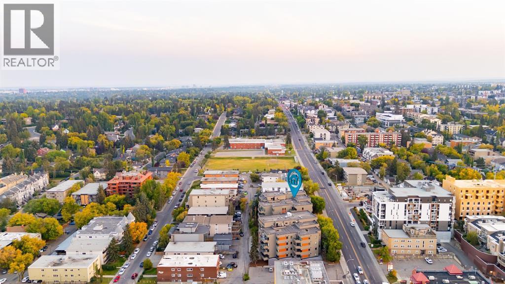Sun-Soaked Corner Unit Steps from the Heart of 17th Ave | Titled Parking & Gas Fireplace. Escape the winter chill in this stunning corner unit condo, perfectly positioned to capture maximum natural light even on the shortest days. Located just steps from the vibrancy of 17th Avenue SW, this home offers the ultimate Calgary lifestyle: a quiet, secure sanctuary inside, with the city’s best dining, nightlife, and boutique shopping right at your doorstep. Whether you are walking to work in the downtown core or meeting friends for happy hour, you are in the centrer of the action. The interior is designed for both comfort and modern elegance. As you enter, rich engineered hardwood floors guide you into a bright, open-concept living space. Being a corner unit, the home benefits from two sides of expansive windows, ensuring the space feels airy and inviting year-round. The living room is anchored by a cozy gas fireplace with a stylish mantle—the perfect spot to unwind with a glass of wine after a long day or to curl up with a book during a snowfall.The chef-inspired kitchen is a standout feature rarely seen at this price point. It highlights gleaming granite countertops, a full-height tile backsplash, and a premium gas range—a luxury for condo living that avid cooks will appreciate. The layout provides excellent flow into the dedicated dining area, making it ideal for hosting dinner parties without separating the host from the conversation. The floor plan is thoughtfully designed to maximize privacy. The primary suite is a true retreat, spacious enough for a king-sized bed, and features a walkthrough closet leading to a luxurious 4-piece ensuite with a separate glass shower and soaker tub. The second bedroom is situated on the opposite side of the living space—perfect for a roommate, a home office, or guests—and is served by a convenient 3-piece main bath.Value-added features include• Titled Underground Parking: A non-negotiable in Calgary; keep your vehicle warm and secure all winter, meaning no more scraping ice off your windshield.• Private Balcony: A covered outdoor space ready for your BBQ and the first warm days of spring.• In-Suite Convenience: Full-sized washer and dryer, plus a designated assigned storage locker for your seasonal gear (skis, bikes, and golf clubs).• Secure Building: A beautifully maintained complex with a welcoming foyer, convenient elevator access, and strong curb appeal.This location offers a "Walk Score" paradise. You are minutes from grocery stores, fitness studios, coffee shops, and transit. Whether you’re looking for a stylish home in the heart of the city or a high-performing investment opportunity in a prime rental location, this property delivers on all fronts. Don't miss this chance to own a piece of Mt Royal (id:6769