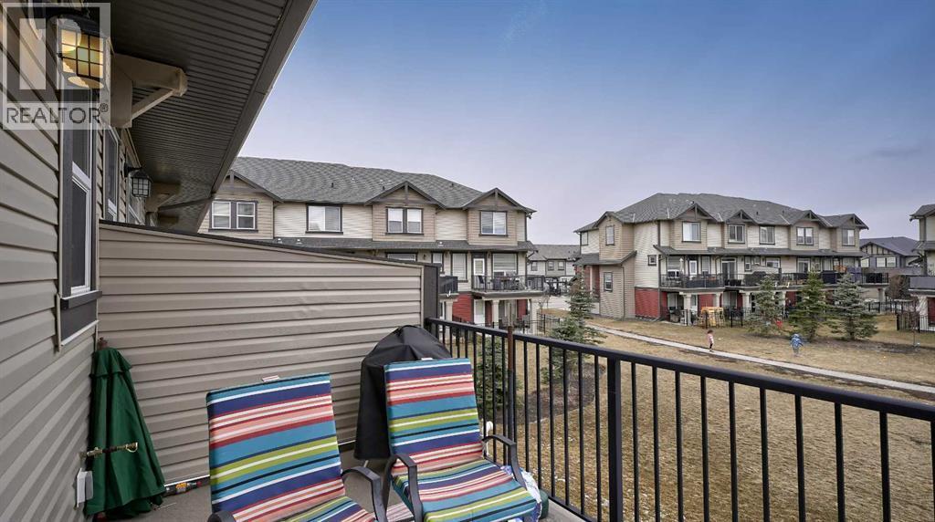 Low maintenance lifestyle living here, w/ quick access to outdoor active living. Entrance way spacious and plus amazing thick newer carpet starting on the stairs. Main floor is perfect for entertaining, being open concept, w/ an abundance of natural lighting. Cozy living room w/ large windows and electric fireplace plus brand new ceiling fan. Massive eat up island, space for all to gather around, w/ granite countertops. Modern pendulum lighting & newer luxury vinyl planking throughout this level. Convenient powder room. Dining room has plenty of space for entertaining, & an unobstructed view of the courtyard. Deck is good sized for enjoying those summer evenings. Laundry facilities are favorably located on the upper level. Master ensuite has double sinks, oversized walk in shower & walk in closet. Carpeting that is throughout is newer, lush and feels amazing on your feet. Tandem parking in this garage, plenty of storage space, plus parking on the driveway. Access to the small fenced yard from the garage. Heron's Crossing Elementary School is just a walk across the street. 60 acres of protected environmental reserve, parks, ponds, playground, bridge, plus miles of trails along Nose Creek are a stones throw away. (id:6769