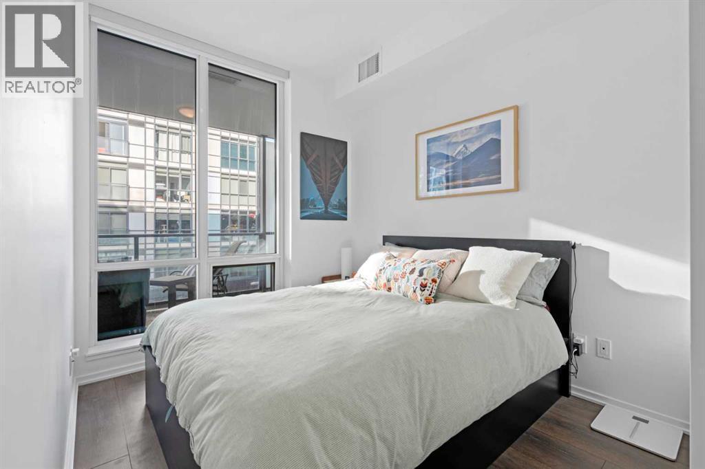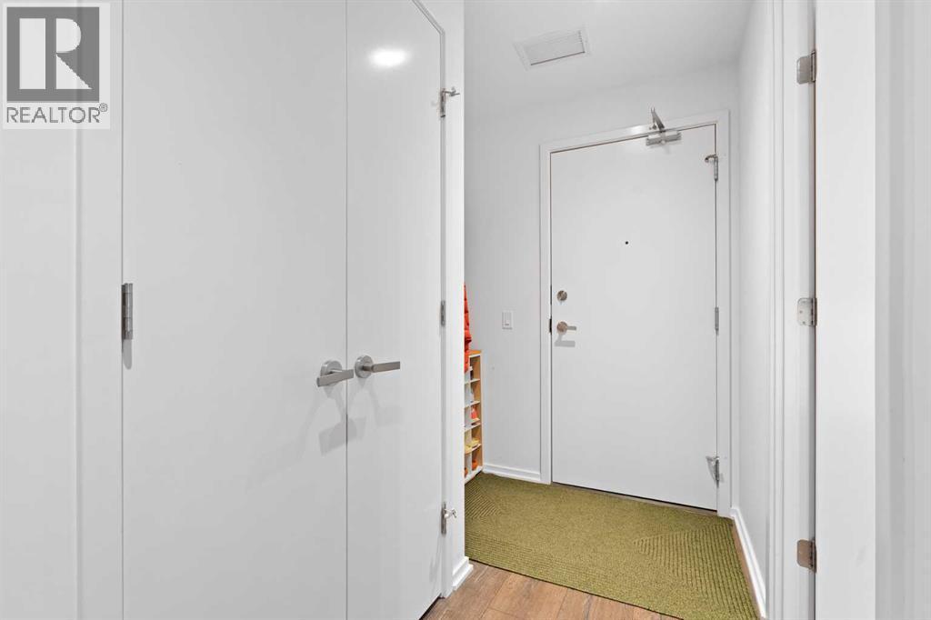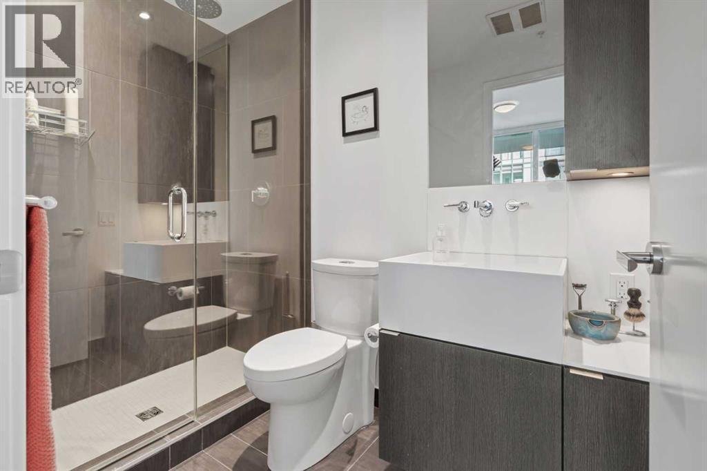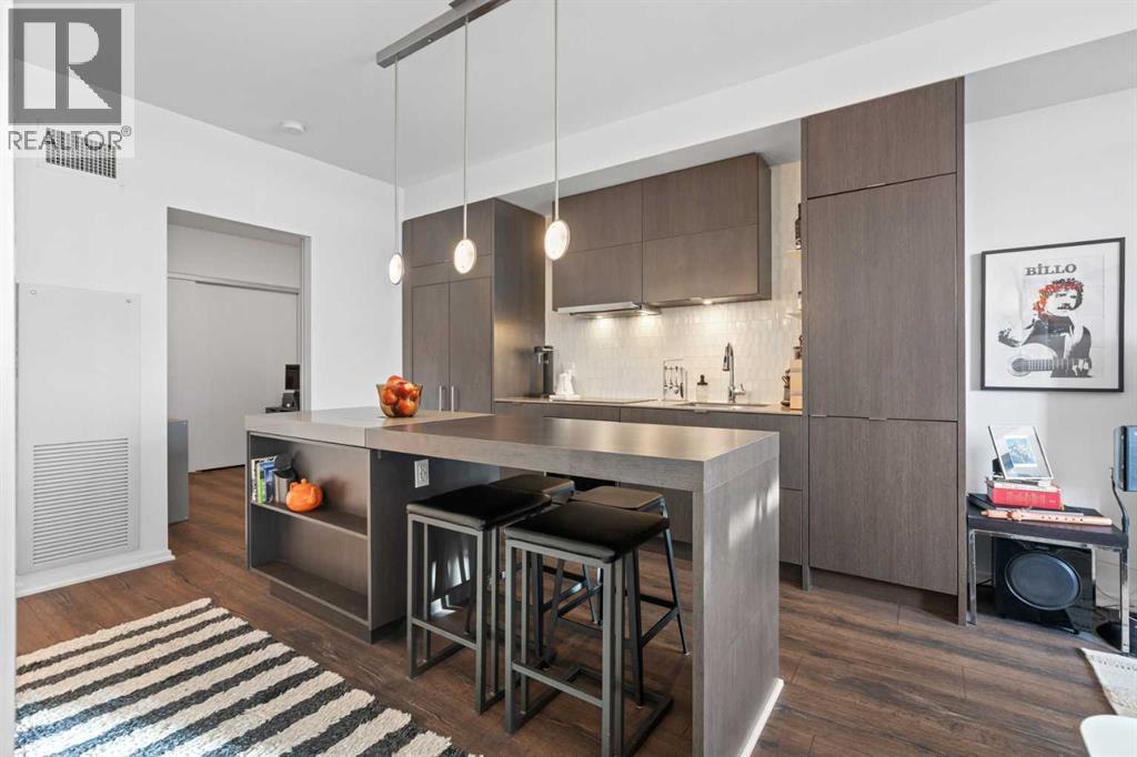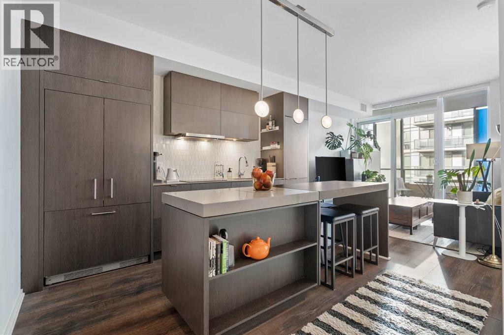 Welcome to Verve – a high quality building by FRAM and Slokker, offering unmatched value and an array of top-notch building amenities. This immaculate 2 bedroom, 2 full bathroom condo offers an ideal floorplan, with flexibility to have multiple work-from-home spaces or easily accommodate having a roommate. Designed by the award winning international designer, Cecconi Simone, the floorplan is flawless, being very functional and efficient with clean and modern finishes. Upon entering the unit, you are greeted by a spacious foyer with room for a bench or shoe rack as well as a full-sized front closet. Further down the entry way, there is the perfect nook for an office desk or additional storage. The European-styled kitchen features sleek cabinetry, built-in appliances, custom-designed pendant lighting and a smart eat-in island that fits four. The kitchen is fitted with quartz countertops, a stainless steel under-mount sink with a pull-out faucet, mosaic tiled backsplash and under-cabinet led lighting. With bedrooms and bathrooms on opposite sides, privacy is maximized. The closets have been finished with custom closet organizers, providing plenty of storage. The modern bathrooms come with custom cabinetry, beautiful lighting, a luxurious soaker tub and a spacious shower with a glass enclosure. Floor to ceiling windows span the living room which opens up to an oversized balcony, encompassing a seamless blend of indoor/outdoor enjoyment. The unit is completed with in-suite laundry, a spacious titled parking stall and a storage locker. Residents of Verve enjoy full-time concierge services, a boutique hotel-feel lobby, plenty of visitor parking stalls and multiple secured bike rooms. Upscale amenities include a fully equipped gym and the sixth-floor lounge with a kitchen, comfy couches, fireplace, original artwork and outdoor terrace. The 25th floor rooftop patio is stunning, providing the perfect spot for taking in the city’s incredible views. East Villag e is one of Calgary’s most vibrant and walkable neighbourhoods – steps to river pathways, parks, St. Patrick’s Island, grocery stores, cafes at your doorsteps and delicious restaurants right around the corner. Take advantage of the easy commuting with the close c-train in the free-fare downtown zone. Fall in love with East Village and begin your next chapter here. (id:6769