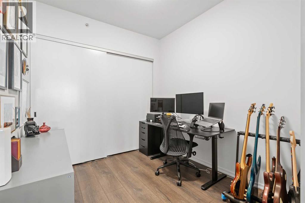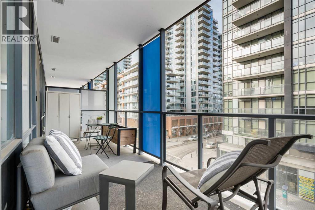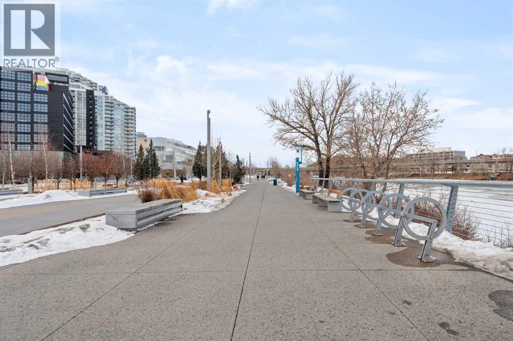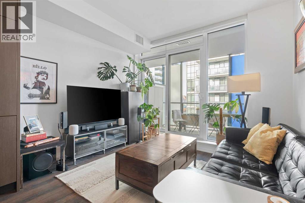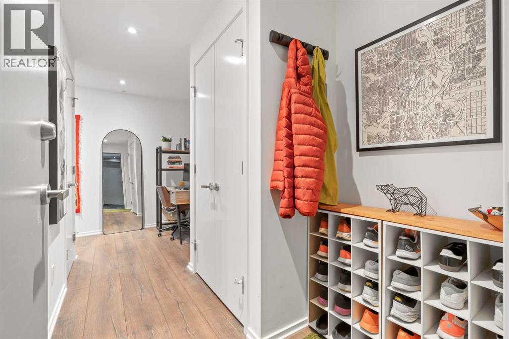 Welcome to Verve – a high quality building by FRAM and Slokker, offering unmatched value and an array of top-notch building amenities. This immaculate 2 bedroom, 2 full bathroom condo offers an ideal floorplan, with flexibility to have multiple work-from-home spaces or easily accommodate having a roommate. Designed by the award winning international designer, Cecconi Simone, the floorplan is flawless, being very functional and efficient with clean and modern finishes. Upon entering the unit, you are greeted by a spacious foyer with room for a bench or shoe rack as well as a full-sized front closet. Further down the entry way, there is the perfect nook for an office desk or additional storage. The European-styled kitchen features sleek cabinetry, built-in appliances, custom-designed pendant lighting and a smart eat-in island that fits four. The kitchen is fitted with quartz countertops, a stainless steel under-mount sink with a pull-out faucet, mosaic tiled backsplash and under-cabinet led lighting. With bedrooms and bathrooms on opposite sides, privacy is maximized. The closets have been finished with custom closet organizers, providing plenty of storage. The modern bathrooms come with custom cabinetry, beautiful lighting, a luxurious soaker tub and a spacious shower with a glass enclosure. Floor to ceiling windows span the living room which opens up to an oversized balcony, encompassing a seamless blend of indoor/outdoor enjoyment. The unit is completed with in-suite laundry, a spacious titled parking stall and a storage locker. Residents of Verve enjoy full-time concierge services, a boutique hotel-feel lobby, plenty of visitor parking stalls and multiple secured bike rooms. Upscale amenities include a fully equipped gym and the sixth-floor lounge with a kitchen, comfy couches, fireplace, original artwork and outdoor terrace. The 25th floor rooftop patio is stunning, providing the perfect spot for taking in the city’s incredible views. East Villag e is one of Calgary’s most vibrant and walkable neighbourhoods – steps to river pathways, parks, St. Patrick’s Island, grocery stores, cafes at your doorsteps and delicious restaurants right around the corner. Take advantage of the easy commuting with the close c-train in the free-fare downtown zone. Fall in love with East Village and begin your next chapter here. (id:6769