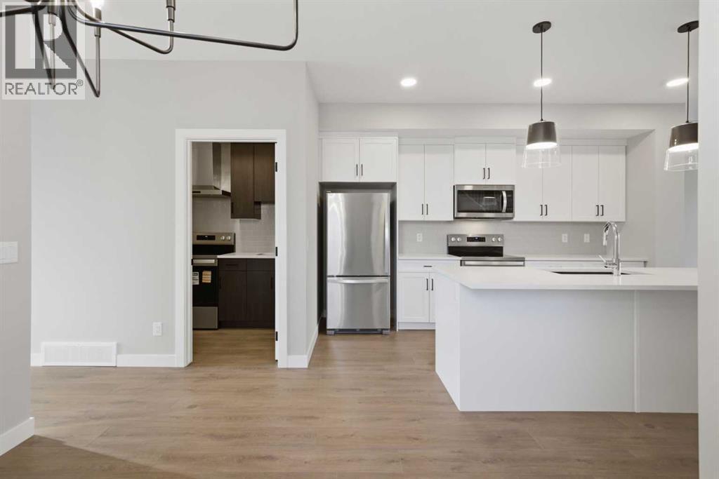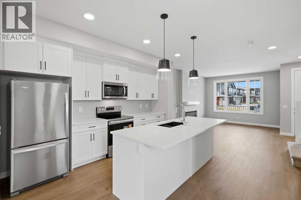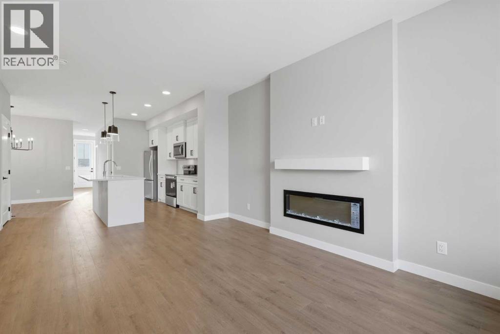 1869 SQ.FT. | 4 BEDS | 3.5 BATHS | MAIN FLOOR BED & BATH | SPICE KITCHEN | REAR DECK | HARDIE BOARD SIDING | SIDE ENTRANCE + 9" BASEMENT CEILING | BONUS ROOM | HUGE PIE SHAPED LOT | SE FACING BACKYARD | FRONT LANDSCAPING INCLUDED | Built by Crystal Creek Homes, this is one of the best values currently available in Belvedere, offering more space and more hard-to-find features than comparable homes at this price point. Set on a rare pie-shaped lot with a huge southeast facing backyard and completed 10’×10’ deck, this home delivers outdoor space that most Belvedere homes simply don’t have. Inside, the light and airy modern finishings create an inviting feel across 1,869 sq ft, thoughtfully designed for growing or multi-generational families with 4 bedrooms and 3.5 baths, including a main-floor bedroom and full bath, a bonus room, and a great room with fireplace. The spice kitchen, durable Hardie board siding, and separate side entrance with 9’ foundation add real long-term value, with strong potential for a future legal basement suite (subject to City approval and permitting). Located on a quiet street, just steps from the future school site and soccer field, and minutes from Costco, Walmart, Cineplex, restaurants, shopping, Chestermere, and quick access to Stoney Trail, this is a home that offers everyday convenience. Homes with this combination of lot size, layout, and upgrade package rarely come available—and it comes with the added confidence of a full builder warranty. Book your showing today! (id:6769
