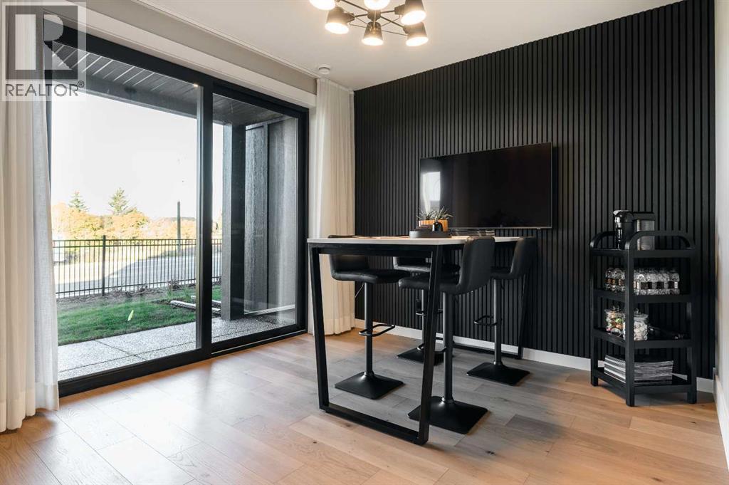 Nestled in the heart of Seventeen Hundred at Aspen Estates, this luxurious townhome with The Dalton floorplan (a design finalist with the 2025 BILD Calgary Awards) has been carefully crafted by RareBuilt Homes & offers over 2,700 sq ft of refined living space, complete with 3 bedrooms, amazing mountain views and exceptional design throughout. The airy main level with lofty 9’ ceilings, showcases engineered hardwood flooring, and expansive high end European triple glazed tilt & turn windows that flood the home with natural light. A spacious great room centers around a striking feature fireplace and opens to a large balcony with a louvered roof—perfect for year round enjoyment. A dedicated office space provides an ideal setting for work from home days. The beautifully appointed kitchen features quartz countertops, a generous island with eating bar, full height custom cabinetry, a walk in pantry, and a premium appliance package. The dining area comfortably accommodates gatherings with family and friends. A stylish 2 piece powder room completes the main level. Upstairs, the second level hosts three well proportioned bedrooms, a 4 piece bath, and convenient laundry facilities. The serene primary retreat with soaring vaulted ceiling includes a spacious walk in closet and a private 5 piece ensuite with in floor heat, dual sinks, a freestanding soaker tub, and a separate shower. The lower level offers impressive versatility with a large flex room and direct access to a walk out patio—ideal for a media room, fitness area, or family space. This level also includes a mudroom connecting to the fully finished & painted oversized double attached garage that’s EV charger ready. Additional highlights include an elevator serving all three levels, central air conditioning, six solar panels, and concrete demising walls for enhanced privacy and noise reduction. Set within an exclusive complex spanning nearly 9 acres—5.5 of which are dedicated to green space—this residence delivers an u nparalleled standard of comfort, quality, and sophisticated living. (id:6769