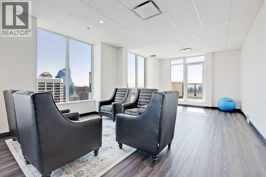 *VISIT MULTIMEDIA LINK FOR FULL DETAILS & FLOORPLANS!* Welcome to SUB-PENTHOUSE LIVING at Vogue! This 2-bed + den, 2-bath condo w/ over 1,200 sq ft on the 34th-floor w/ amazing city skyline band river views boasts two balconies opening off the main living areas. Naturally bright living w/ soaring ceilings, modern light and ceiling details, an open concept floorplan, & engineered hardwood flooring throughout (no carpet!), you are going to love the urban life at Vogue. Gather around the massive island w/ breakfast bar seating & dual undermount sink in the modern, sleek kitchen. Stainless steel appliances include a fridge w/ French doors, a deli drawer, & a freezer drawer, a gas stove & hood fan, a dishwasher, & built-in microwave. White quartz counters & marbled tile backsplash complement the wood & white cabinetry & modern pendant lighting. The open-concept living, dining, and den area has large windows, a gas fireplace, & access to TWO balconies via sliding glass doors. 2 bedrooms flank the main living space for ultimate privacy. The primary bedroom features a walk-in closet w/ custom built-in storage, and a private 5-pc ensuite. Featuring white quartz counters, modern faucets, dual undermount sinks, wood grain cabinetry, a standup shower, & soaker tub w/ full height tile, you’ll find everything you want & more in a primary suite. The secondary bedroom on the opposite side of the unit features a large window, a walk-in closet w/ custom built-in storage, & quick access to the main 4-pc bathroom w/ white a quartz counter, undermount sink, modern faucet, wood grain cabinets & a tub/shower combo w/ full-height tile. Rare for condo living, this unit has a laundry room w/ a washer & dryer, & heated, underground parking w/ a storage locker. VOGUE is a high-end building w/ lots of amenities, including an elegant lobby, full-time concierge, gym, billiards, large party room w/ kitchen & multiple rooftop terraces. Surrounded by parks, transit, the LRT, shopping & more, & with in walking distance to the downtown core & all Kensington shops & services – this location truly cannot be beaten. (id:6769