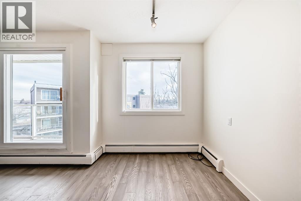 Welcome to this bright, 2 bedroom, east-facing condo located in the established community of Greenview. Offering a functional layout and modern finishes, this unit is filled with natural morning light and features durable vinyl flooring throughout the main living areas. The open-concept living and dining space provides excellent flexibility for both everyday living and entertaining, complemented by neutral tones that suit any décor style. The adjacent kitchen is well appointed with rich brown cabinetry, granite countertops, a classic subway-tile backsplash, black appliances, and a convenient breakfast bar for casual dining. The spacious bedroom features soft carpeting, a ceiling fan, and a large window that enhances the natural light. A four-piece bathroom completes the unit with a full tub and shower, contemporary vanity with stone countertop, and tile flooring. An assigned outdoor parking stall is included for added convenience. Situated in the central community of Greenview, this condo offers easy access to major roadways, public transit, shopping, schools, parks and the restaurants and shops of Edmonton Trail, Centre Street and 4th Street. Don’t miss this opportunity and call for your viewing today! (id:6769