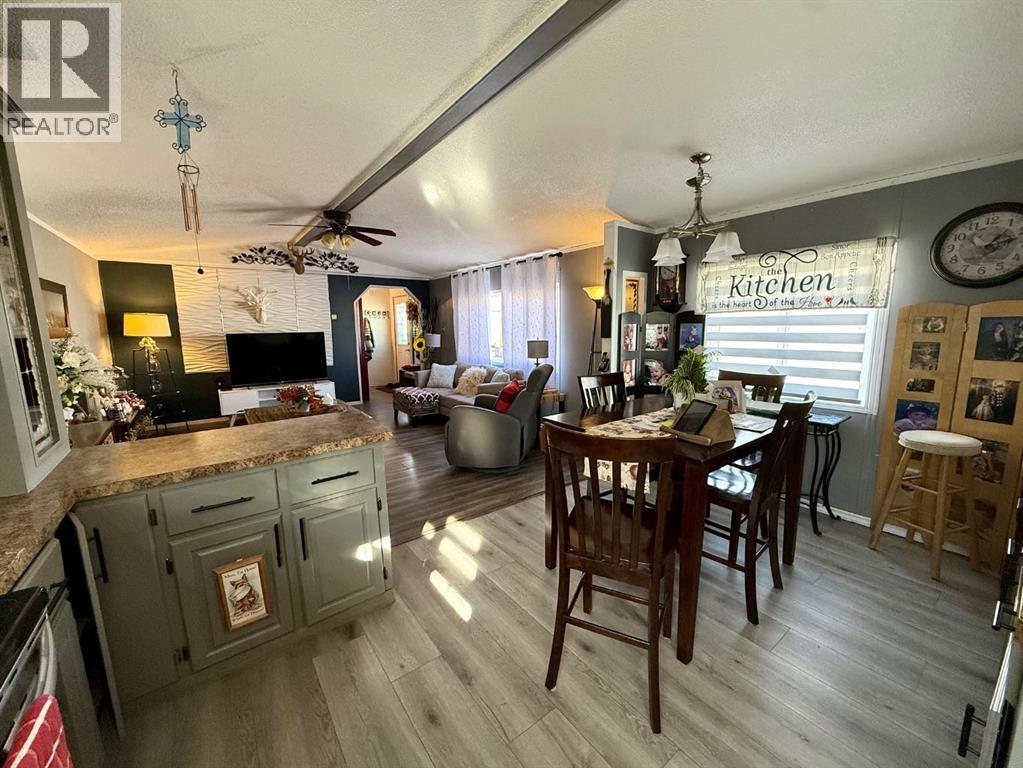 Welcome to this beautifully maintained 3-bedroom, 2-bathroom mobile home located in the quiet and well-kept 50+ community of Homestead Acres. Step inside to a bright open-concept kitchen, dining, and living area that is ideal for everyday living and entertaining. The south side of the home features a spacious primary bedroom complete with a large 3-piece ensuite and walk-in closet, while the north side offers two additional bedrooms, a full 4-piece bathroom, and a separate laundry and utility room for added convenience. Outside, enjoy an oversized deck, plenty of green space, new wood fencing, and a brand-new oversized shed. Numerous updates have been completed over the years including newer stainless steel appliances, washer and dryer, an updated furnace, and more—showcasing true pride of ownership. Book your showing today! (id:6769