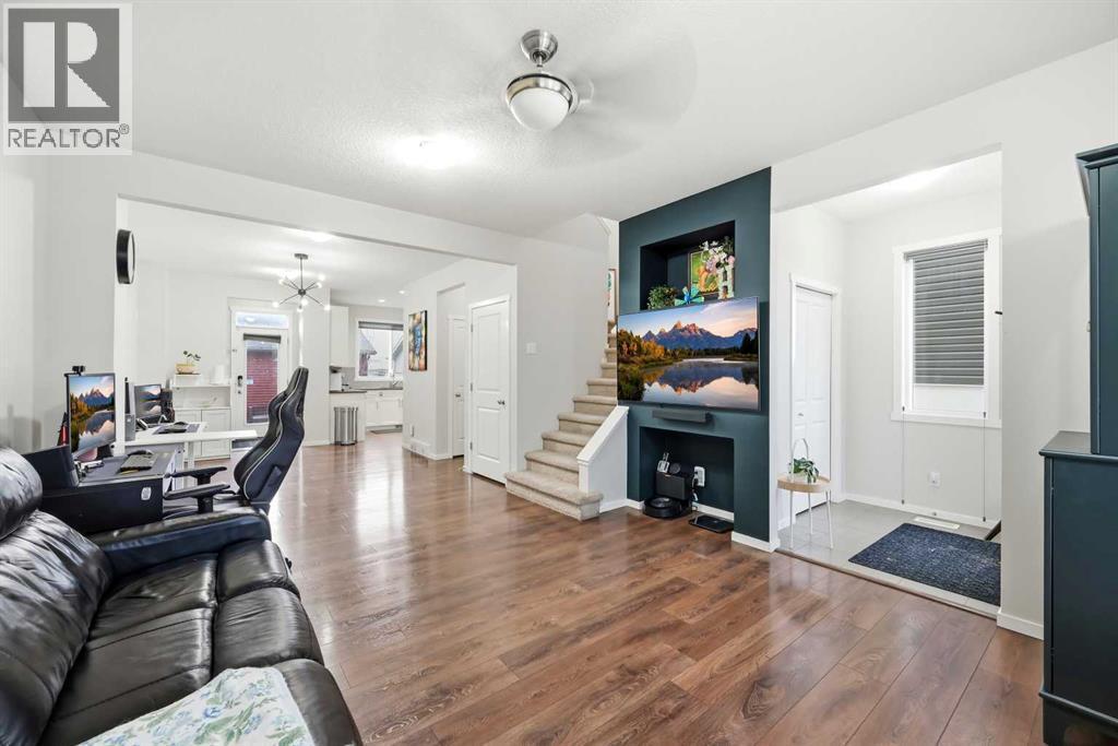 WELCOME TO THIS EXCEPTIONAL, HEAVILY UPGRADED CORNER-LOT TOWNHOME IN THE HEART OF SAVANNA! This NO CONDO FEE, EAST-FACING property offers the comfort and quiet of a detached feel with the convenience of urban living. Featuring a PREMIUM HUSH-HUSH PARTY WALL SYSTEM, this home delivers outstanding sound insulation and privacy—ideal for modern families and professionals alike.Proudly maintained and FRESHLY PAINTED, the home showcases over $100K IN UPGRADES AND IMPROVEMENTS throughout. The MAIN FLOOR features a bright, open-concept layout with durable upgraded flooring, QUARTZ COUNTERTOPS, modern cabinetry, PANTRY, and a well-appointed kitchen with GAS STOVE. The spacious living and dining areas are perfect for everyday living and entertaining, complemented by tasteful finishes for a true move-in-ready feel. The UPPER FLOOR offers a thoughtfully designed layout with THREE GENEROUS BEDROOMS, including a spacious PRIMARY BEDROOM WITH ENSUITE & WALK-IN CLOSET, plus an additional 4-PIECE FULL BATHROOM. Convenient UPPER-FLOOR LAUNDRY adds everyday functionality, while large windows throughout provide excellent natural light. The thoughtfully designed layout continues into the FULLY DEVELOPED BASEMENT WITH HOME THEATRE, featuring an additional bedroom, full bathroom, ample storage, and a versatile bonus room—perfect for extended family, guests, or entertainment. The PREMIUM CORNER LOT provides extra side yard space, enhanced privacy, and direct side access to the backyard. Enjoy a DOUBLE DETACHED INSULATED GARAGE, landscaped and re-sodded WEST-FACING BACKYARD, concrete patio, stonework pathways, and a fully developed REAR PAVED LANE. CENTRAL A/C, WATER SOFTENER, upgraded CLASS 4 HAIL-RESISTANT ROOFING, and numerous builder and post-possession enhancements add long-term value and peace of mind. UNBEATABLE LOCATION—just steps to SAVANNA BAZAAR, TRANSIT STOP, and close to schools, parks, and everyday amenities, with VERY QUICK ACCESS TO SADDLETOWNE LRT, multiple bus routes, and major roadways for an easy commute across the city. A rare opportunity to own a MOVE-IN READY, UPGRADE-PACKED HOME in one of Calgary’s fastest-growing communities. Exceptional value, exceptional location—this one truly stands out. 3D / VIRTUAL TOUR AVAILABLE. Call your favourite Realtor® to book a showing. (id:6769