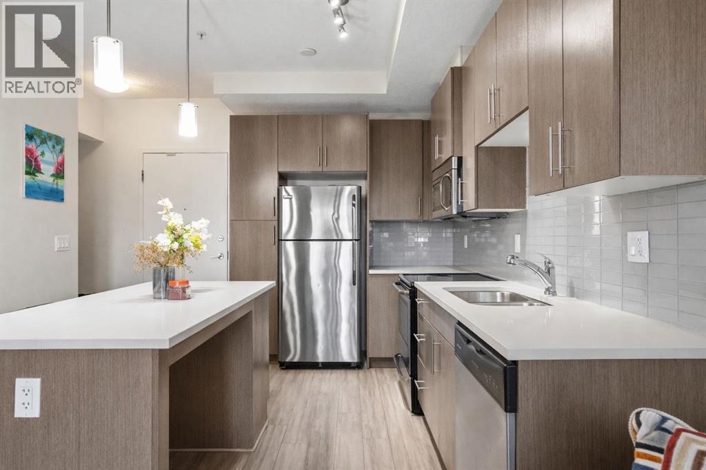 Move-in ready and full of natural light, this 1-bedroom, 1-bathroom condo in the highly sought-after lake community of Midnapore offers the perfect blend of comfort, convenience, and modern design. Whether you’re a first-time buyer, or investor, this bright and stylish home is the ideal opportunity to enjoy a low-maintenance lifestyle with year-round lake access. Inside, you’ll love the open-concept layout that has been freshly painted, featuring 9-foot ceilings and large windows that create a spacious, airy feel. The modern kitchen is equipped with stainless steel appliances, quartz countertops, and a central island with seating, making it a great space for cooking, entertaining, or enjoying your morning coffee. The living and dining area flows seamlessly onto your private, east-facing patio—perfect for relaxing or barbecuing with the gas line hookup already in place. The privacy wall between balconies adds a nice sense of seclusion and comfort. The spacious bedroom has brand new carpet and offers generous closet space and large windows. You’ll also find in-suite laundry, keeping chores simple and convenient. Practical features include heated, titled underground parking, a separate titled storage unit, and pet-friendly policies that allow up to two cats or dogs (with board approval). This is one of the few affordable condos in a newer building in the area, offering fantastic value without compromise. Your monthly condo fees include heat, gas, water, and sewer, as well as the Midnapore Lake HOA fee, giving you full access to the lake and its incredible year-round amenities. Enjoy summer days swimming, kayaking, and paddle boarding, or take advantage of winter activities like skating and snowshoeing—all just steps from your front door. The location couldn’t be better—just a short walk to the CTrain station for quick access to downtown, and close to St. Mary’s University, Fish Creek Park, shopping, dining, and entertainment options. MidCity is a well-managed, pet-frie ndly complex offering exceptional value in one of Calgary’s most desirable lake communities. With a modern interior, secure parking, and full lake privileges, this home offers the perfect mix of urban convenience and outdoor lifestyle. (id:6769