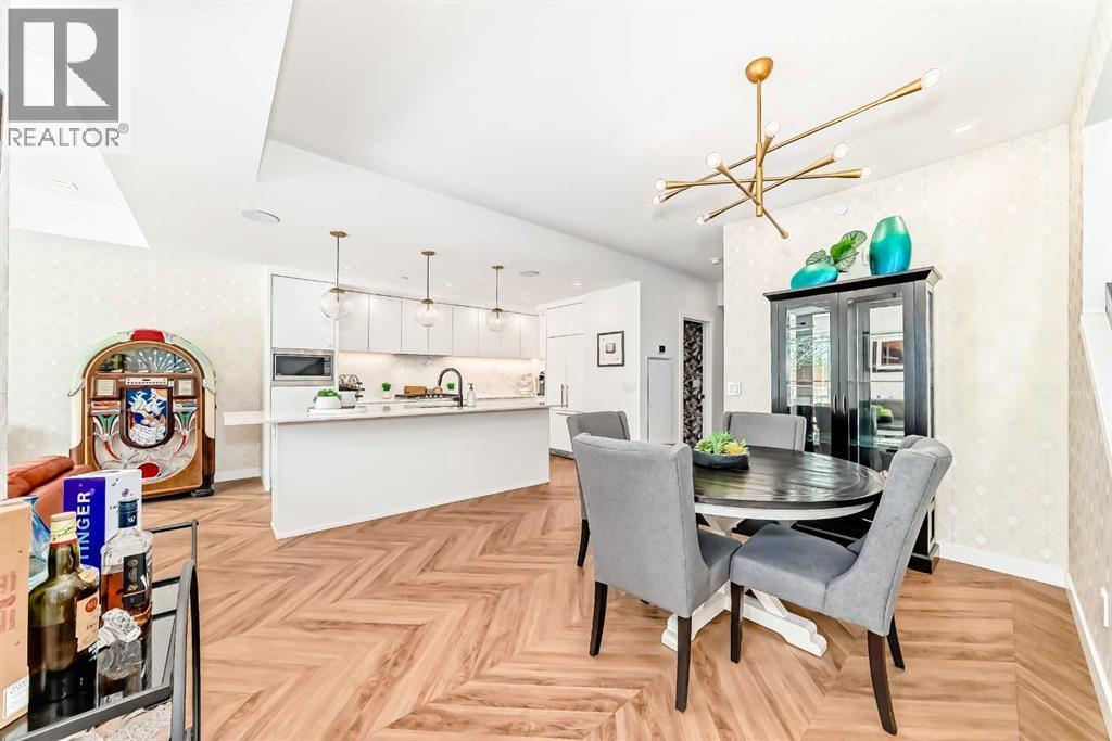 With FULL TIME concierge service, TWO titled underground parking stalls, and lock-and-go convenience, this home is designed for easy, worry-free living. This stunning two-level apartment offers over 1,800 ft² of upgraded living space with 3 bedrooms, 3 full bathrooms, a main floor office, and an upper bonus room. Step inside to experience the quality of a former show suite, with exceptional craftsmanship and thoughtful design throughout. Chevron-patterned wide-plank flooring adds warmth and elegance, while designer wallpapered feature walls bring character and polish. The heart of the home is the kitchen, finished with brushed gold hardware, light quartz countertops, and under-cabinet lighting. Sleek and seamless, custom cabinetry conceals the dishwasher and integrates a 36' Fisher & Paykel fridge for a refined, built-in look. Floor-to-ceiling windows fill the open-concept layout with natural light. The space opens onto a south-facing private patio, ideal for morning coffee, summer evenings, or letting your pup out for a quick stroll. (NO ELEVATOR REQUIRED!) The main floor office sits next to a full 4-piece bathroom, ideal for guests or a flex bedroom. Upstairs, the primary bedroom offers a private balcony, walk-through closet, and a 4-piece ensuite. Two more bedrooms, another full bathroom, and a bonus room provide flexible space for families, hobbies, or home offices. A full laundry room with side-by-side washer/dryer and folding counter adds everyday convenience. Additional features include central A/C, in-ceiling speakers, and upgraded lighting. Residents also enjoy access to the 2nd-floor owner’s lounge and an 8th-floor rooftop patio with panoramic views. Set in the heart of West District, you’re STEPS to parks, restaurants/pubs, and a brand new grocery store! Condo fees include heat, gas, concierge, on-site management, insurance, reserve fund contributions, and more. Be sure to click on the virtual tour link! (id:6769