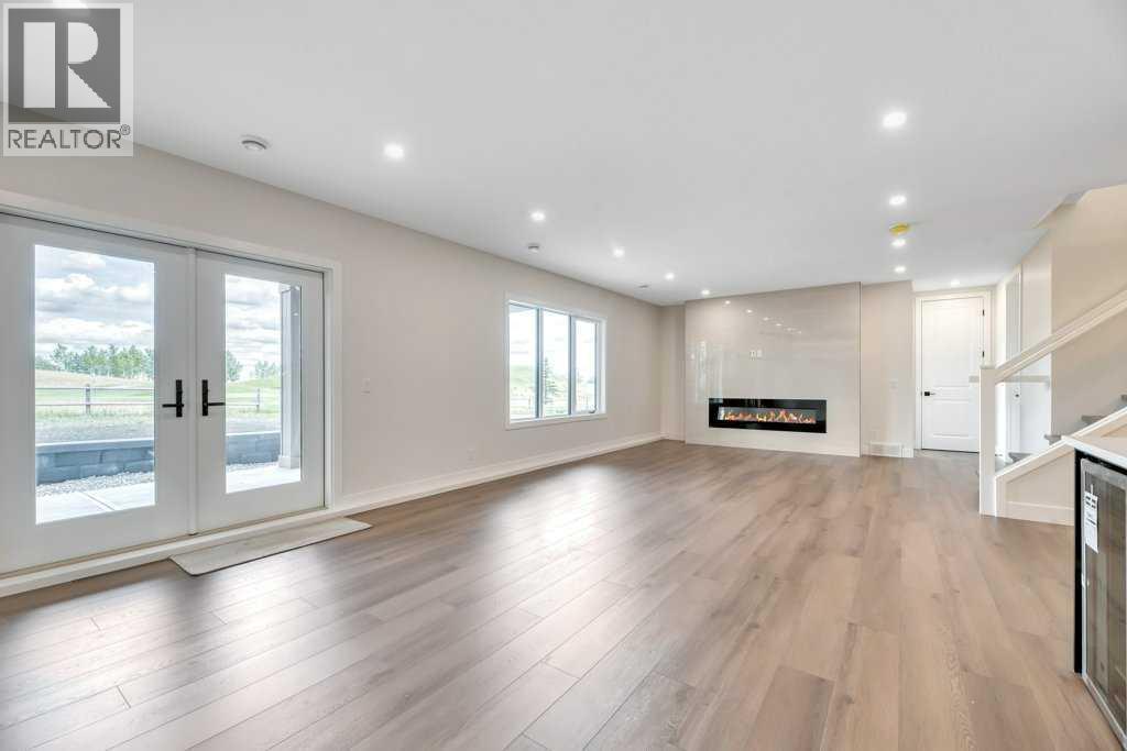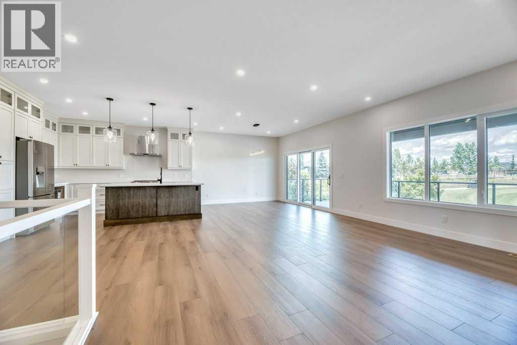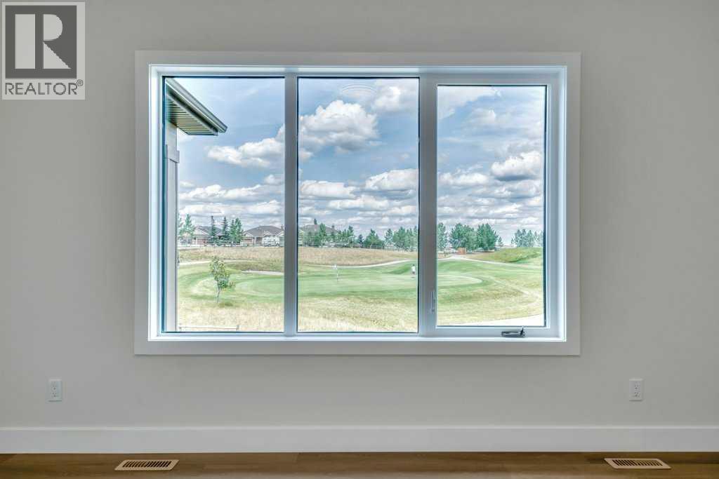Brand-New Walkout Bungalow Backing on the 11th Green at Speargrass Golf Course. Experience luxury living in this beautifully crafted 4-BEDROOM, 4-BATHROOM DESIGNER BUNGALOW, offering over 3,100 sq. ft. of exquisite, thoughtfully designed space. Ideally located just 40 minutes east of Calgary, this stunning walkout home backs directly onto the 11th green of the Speargrass Golf Course and boasts a TRIPLE ATTACHED GARAGE with soaring 11 FT CEILINGS and 9 FT DOORS. Step through the impressive 42” FRONT DOOR into a bright, open-concept layout enhanced by PREMIUM WOOD LAMINATE AND TILE FLOORING. The gourmet kitchen is a true showstopper, featuring QUARTZ COUNTERTOPS, CUSTOM CABINETRY, DESIGNER BACKSPLASH, A LARGE ISLAND, HIGH-END APPLIANCES, AND A SPACIOUS PANTRY. The open DINING AREA, accented by STRIKING LIGHT FIXTURES, is ideal for hosting, while the INVITING LIVING ROOM with a sleek ELECTRIC FIREPLACE provides a cozy setting for everyday comfort. Step out to the COVERED UPPER DECK, finished with DURADEK and GLASS RAILINGS, perfect for BBQs and enjoying the panoramic golf course views. The primary suite is a luxurious retreat, complete with a SPA-INSPIRED ENSUITE featuring a massive tiled shower and dual sinks. A spacious second bedroom, full bathroom, and mudroom with custom bench and cabinetry enhance the main level, along with a large laundry room offering a deep sink, custom cabinetry, and side-by-side washer and dryer. The FULLY DEVELOPED WALKOUT BASEMENT is an entertainer’s dream with a wet bar, second fireplace, two additional bedrooms, two full bathrooms, and direct access to the beautifully landscaped backyard with retaining walls and sweeping golf course views. Built with quality and durability in mind, this home features Hardie board siding, Lux triple-pane aluminum-clad windows, central air conditioning, LED lighting, Level 4 impact-resistant shingles, fireguard drywall, Rockwool insulation, and 8-foot interior doors throughout. Don’t miss this rare opportu nity to own a stunning home in an unbeatable location—book your private showing today! (id:6769