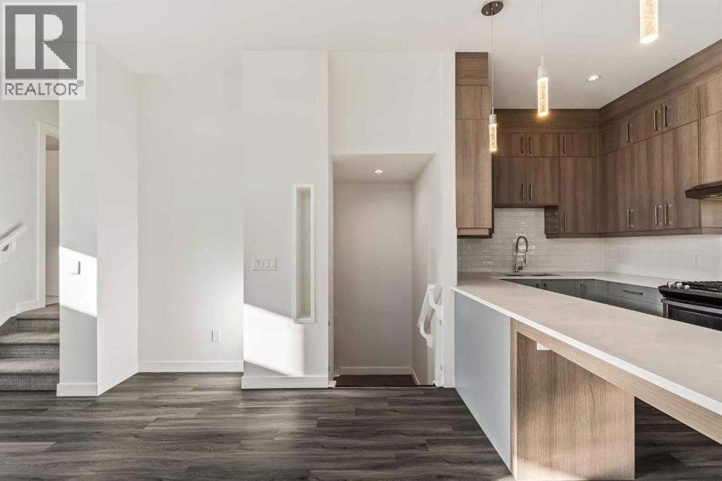 Gorgeous 2 storey townhome located in the sought after community of Tuxedo Park. With just under 2,100 sq ft of living space, 3 bedrooms and 3.5 bathrooms spread over 3 floors, whether you’re a growing family or a down-sizer, this place hits the sweet spot. An open concept main floor greets you as you enter through the front door, with 10 ft ceilings and lots of South-facing windows bringing in lots of natural light. The kitchen setup with extended quartz countertop features stainless steel appliances including a gas range, under cabinet lighting and lots of storage. A large dining area and living room overlook the floor to ceiling tiled fireplace wall. Upstairs, you’ll find a large Primary with vaulted ceilings and a huge walk-in closet. The Primary en-suite includes double sinks, a large glass shower, soaker tub and heated floors. Laundry is located just outside of the Primary and as you walk down the hall you will find the 2nd bedroom with it’s own en-suite bathroom. In the basement, you’ll find a wide open rec room with 9 ft ceilings and a wet bar. A large 3rd bedroom plus a full bathroom round out the basement. This thoughtfully designed home has been built with premium materials and was meant to be enjoyed by its owners, unlike many of the newer ones out there. While this is a back unit, thought has been put into maximizing natural light through South facing windows, skylight etc. Don’t forget to check out the private backyard space, which leads to the garage. The location is perfectly central and close to transit, shopping, SAIT, downtown, schools, parks and loads of great restaurants. (id:6769