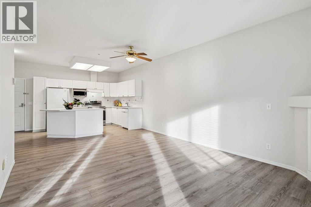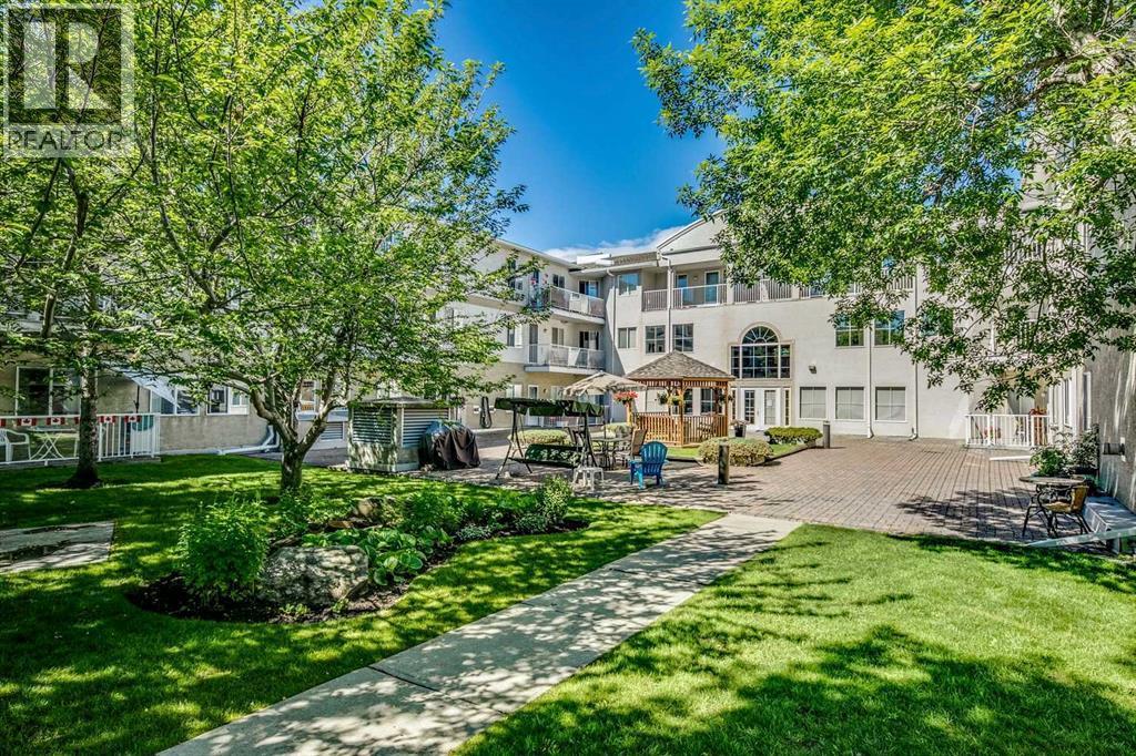 Welcome to Glenmeadows Gardens - a friendly 55+ community situated in the heart of sought after Glenbrook. This immaculate 2 bedroom, 2 bath unit is conveniently located on the main floor close to the entrance & elevator & features a sleek white kitchen with island & breakfast bar open to a spacious dining area & cozy family room with gas fireplace & French door access to a private sunny east facing patio with gate access to a lovely green space. Move in ready with fresh paint throughout, low maintenance vinyl plank flooring, in-floor heating, air conditioning & convenient in-suite laundry. You will appreciate the heated underground assigned parking, large storage room with shelving & bicycle storage. This beautifully maintained complex has a very welcoming atmosphere & includes a long list of sought after amenities including a social room with kitchen, a games room, a library & a fitness room. The beautifully landscaped central courtyard with gazebo, private garden plots, extensive visitor parking & easy bus access make living here a pleasure for you & your guests. This building includes Telus Fibre Optics throughout & two rentable, fully equipped guest suites. Easy access to shopping, restaurants & grocery stores plus a quick escape to the mountains & minutes to Glenmore & Stoney Trails. A wonderful opportunity to enjoy the lifestyle of convenience & ease you deserve! (id:6769