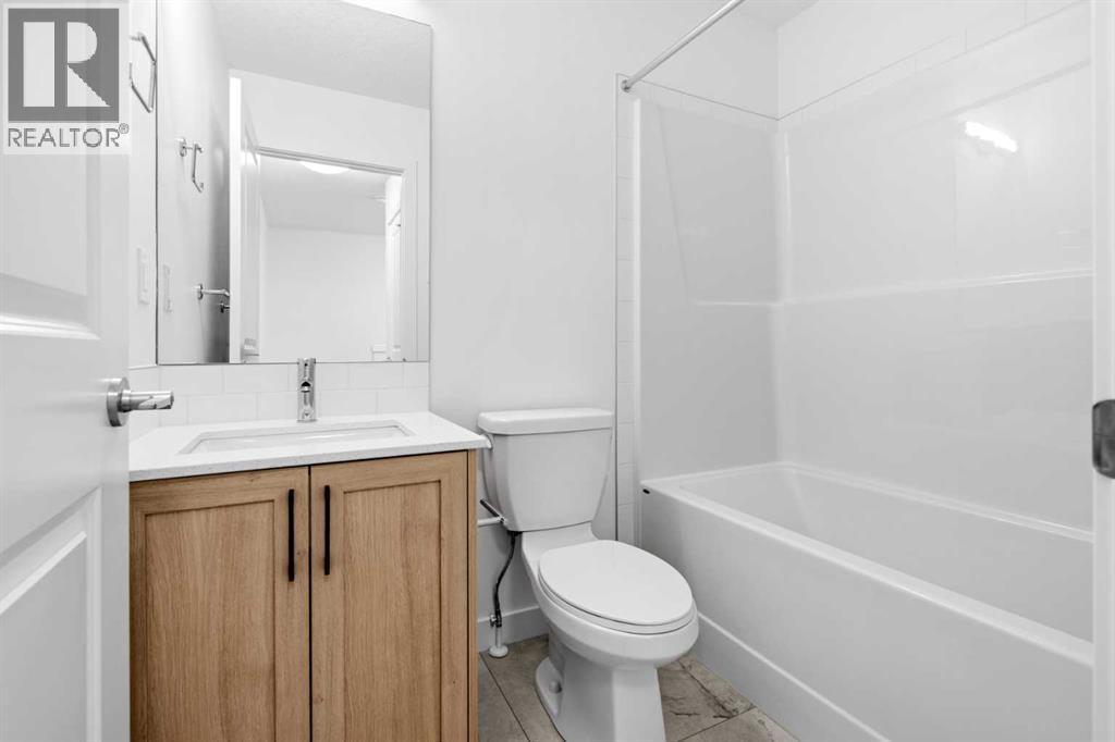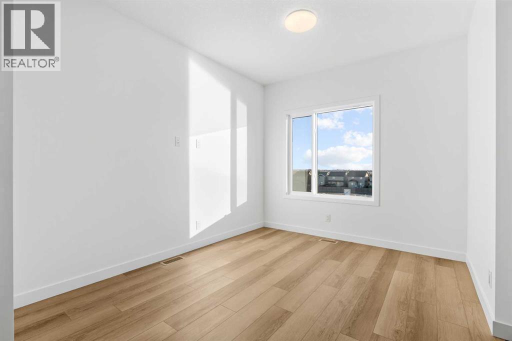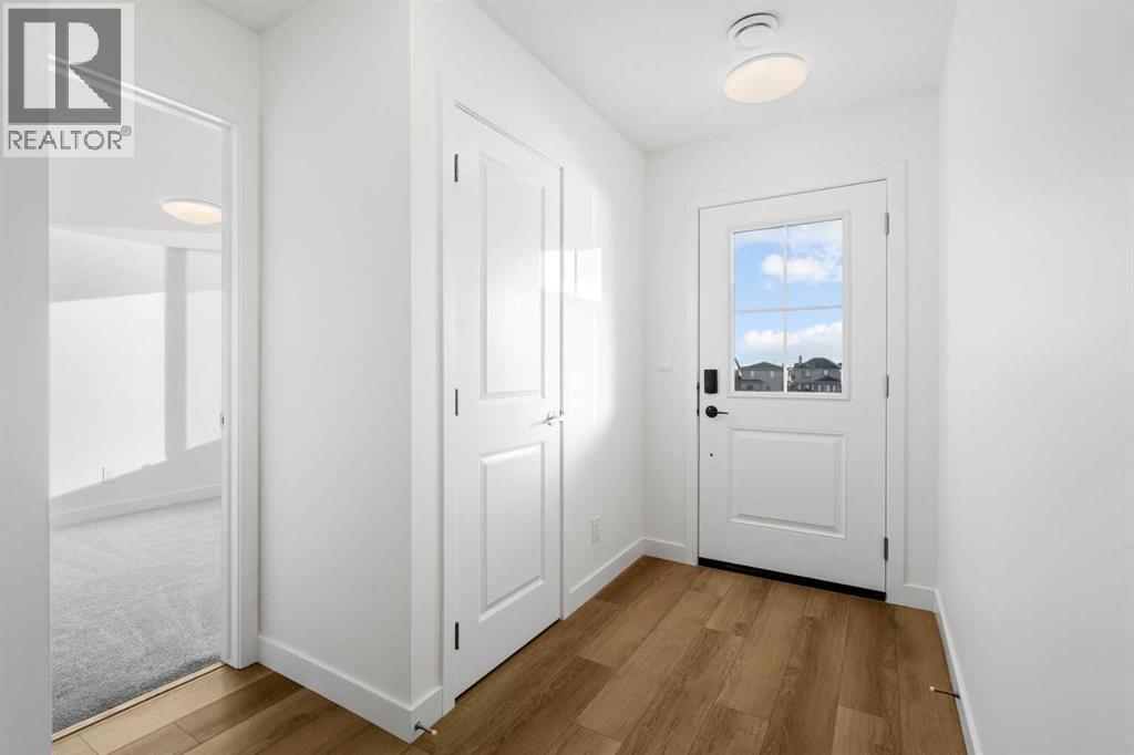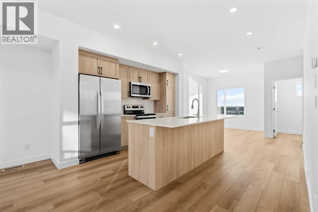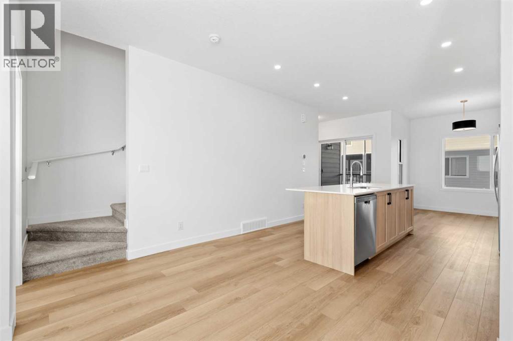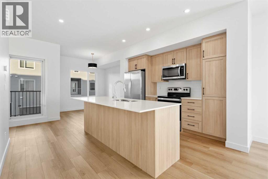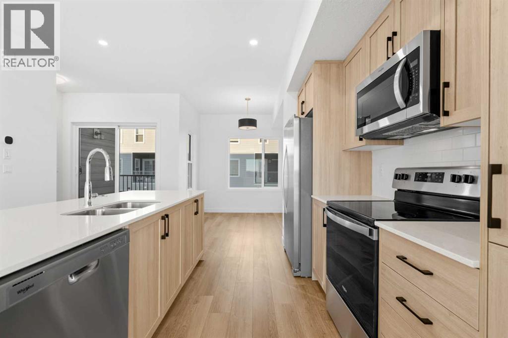 2 YEARS FREE CONDO FEES | NEW BUILD TOWNHOME | LOW CONDO FEES | 4 BED (3 UP, 1 DOWN) / 2.5 BATH / 1,462 SQ FT | OVERSIZED SINGLE ATTACHED GARAGE + DRIVEWAY | IMMEDIATE POSSESSION – Welcome to the Elm 2 townhome by Minto Communities, an award-winning Canadian builder, located in Wildflower, proudly voted Best New Community in Canada. This vibrant, master-planned community in Airdrie is designed with lifestyle and connection in mind, offering a thoughtful mix of home styles in a neighbourhood built to grow with you.This brand-new townhome features a functional and modern layout ideal for today’s homeowner. The main floor offers a well-designed living space at the front of the home, creating a welcoming area to relax or entertain. The kitchen is centrally located and showcases stainless steel appliances, a large island, modern finishes, ample cabinetry, and storage. The dining area is positioned at the rear of the home with direct access to a private balcony—perfect for morning coffee or unwinding at the end of the day. A convenient 2-piece bathroom completes this level.Upstairs, the spacious primary bedroom includes a walk-in closet and a private 3-piece ensuite. Two additional bedrooms, a full 4-piece bathroom, and conveniently tucked-away upper-floor laundry provide excellent functionality for families, guests, or home office needs.The lower level features a large foyer with direct access to the oversized single attached garage, along with a fourth bedroom—ideal for guests, a home office, or flex space. A full driveway adds valuable additional parking, offering everyday convenience rarely found in townhome living.Residents of Wildflower enjoy exclusive access to The Hillside Hub, a standout amenity centre featuring Airdrie’s first outdoor pool, a hot tub, open-air sports court, and a variety of shared indoor and outdoor spaces designed for gathering, recreation, or quiet retreat. With nearby parks, pathways, amenities, and easy access to major routes, Wildflower delivers a truly well-rounded lifestyle.Combining award-winning community planning, modern design, low condo fees, and immediate possession, this is an outstanding opportunity to own a stylish new build townhome in one of Canada’s most celebrated communities. Don’t miss your chance to make Wildflower home! Book your visit today! (id:6769