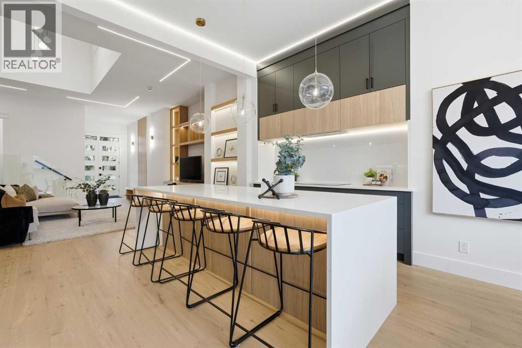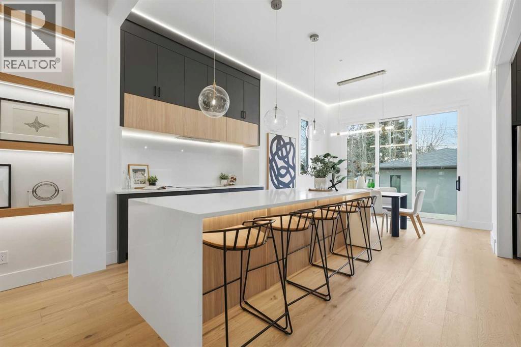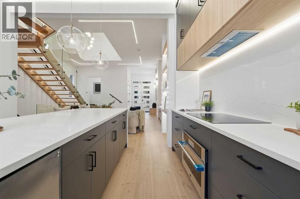 OPEN HOUSE SATURDAY, MARCH 14TH FROM 1-3 PM & SUNDAY, MARCH 15TH FROM 1-4 PM. Stunning new home with full Smart Home capability, built by Libra Homes situated on a 27.6’x120’ lot in the heart of North Glenmore Park, offering 3+1 bedrooms & nearly 3000 sq ft of luxurious living space. The open & airy main level presents wide plank hardwood floors, lofty ceilings & stylish light fixtures, showcasing a spacious living room with built-ins that seamlessly transitions into the unique dual style kitchen that’s perfect for the entertainer & tastefully finished with quartz counter tops, island/eating bar & the convenience of a built-in oven, induction cooktop stove plus a gas stove with pot filler, 2 rangehoods, full sized fridge & a second smaller built-in paneled fridge with 2 drawers, making prep work & cooking for large gatherings effortless. A bright dining area provides ample space to host family & friends. A private office is located just off the foyer, perfect for a home office setup & a 2 piece powder room completes the main level. Ascend the open riser staircase to the second level that hosts 3 bedrooms, a 5 piece main bath & a well-designed laundry room with sink & storage. The primary retreat boasts a to-die-for walk-in closet & opulent 5 piece ensuite with dual sinks, relaxing freestanding soaker tub & oversized glass enclosed shower. Basement development lends itself to game or movie night, featuring a family/media room with built-in entertainment centre, cozy fireplace, built-in speakers & wet bar with plenty of room for a second seating area. A fourth bedroom & 3 piece bath with rejuvenating steam shower are the finishing touches to the basement. Other notable features, roughed-in A/C, LED lighting throughout, large back deck & double detached garage with enough space to park a larger vehicle. The location is incredibly convenient, close to Glenmore Athletic Park, Lakeview & Earl Grey Golf Clubs, schools, shopping, public transit & effortless access to Glenmo re & Crowchild Trails. (id:6769