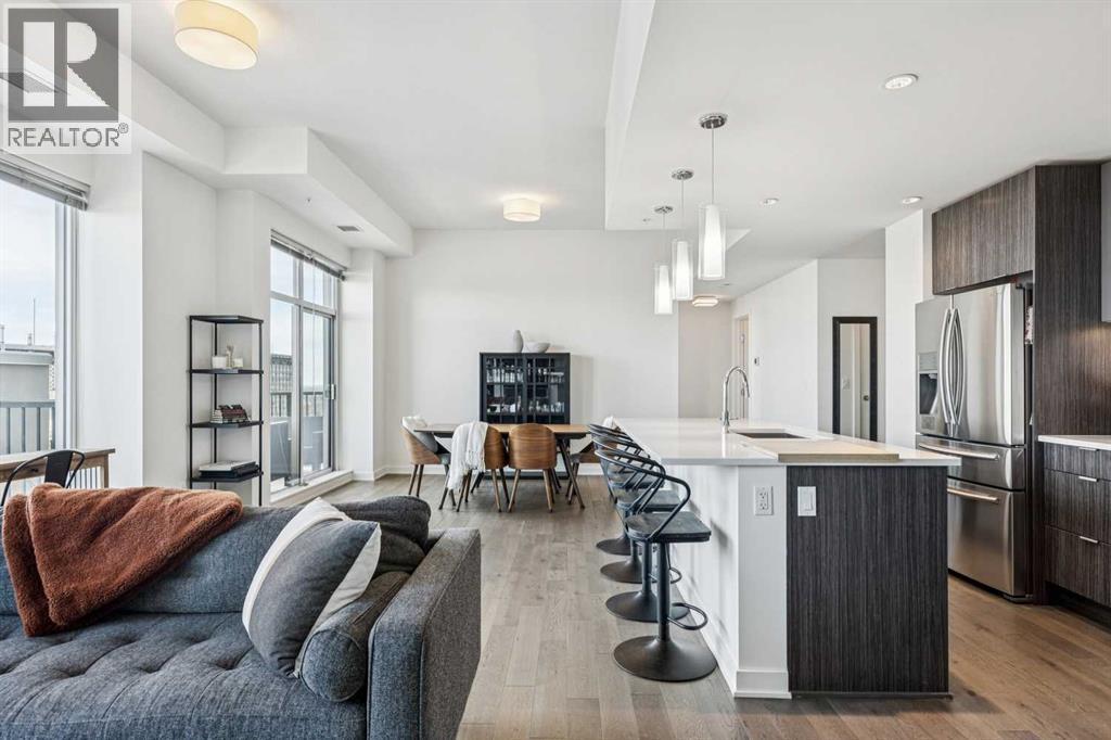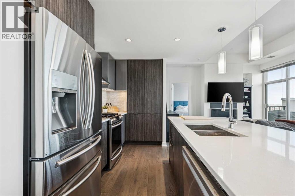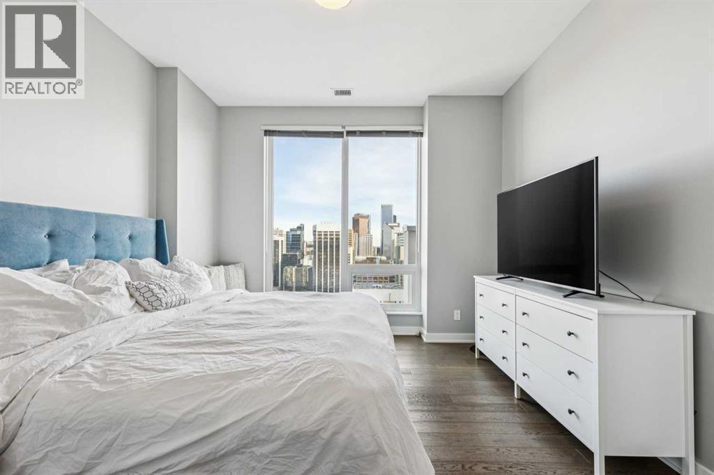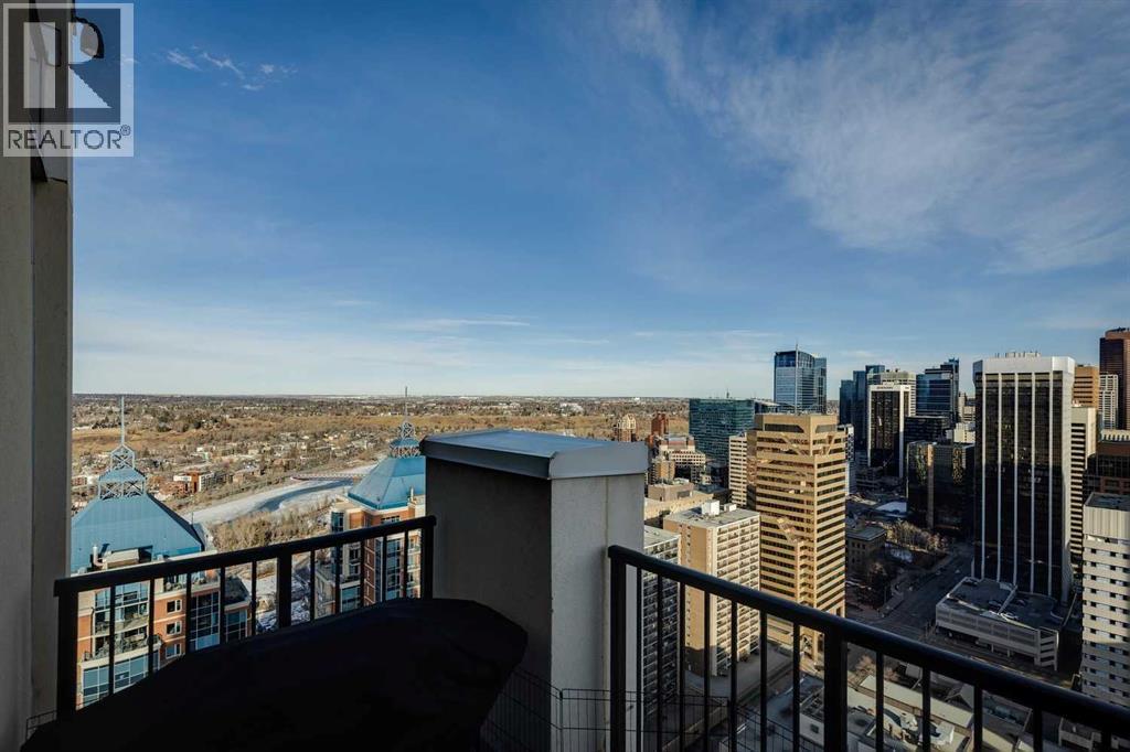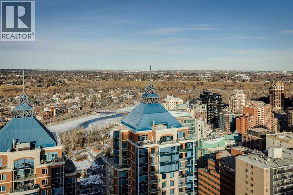 PRICE IMPROVEMENT! Experience elevated penthouse living at The Vogue, perched high above the city’s financial core. This rare 2 bedroom, 2 bathroom residence features soaring vaulted ceilings, floor-to-ceiling windows, and TWO well-placed balconies that capture sweeping urban views, river views, and natural light throughout the day. The thoughtfully designed layout includes a spacious primary retreat with a walk-in closet and an exceptional 5-piece ensuite with double vanity, a separate in-unit laundry room, and open-concept living ideal for both everyday comfort and entertaining. Offered in only a limited number of high-rise units, this penthouse delivers a truly exclusive living experience. Completing the package are TWO TITLED underground parking stalls (UNITS 1 & 2) with immediate access from the parkade entrance - a rare and valuable convenience in the downtown core. (id:6769