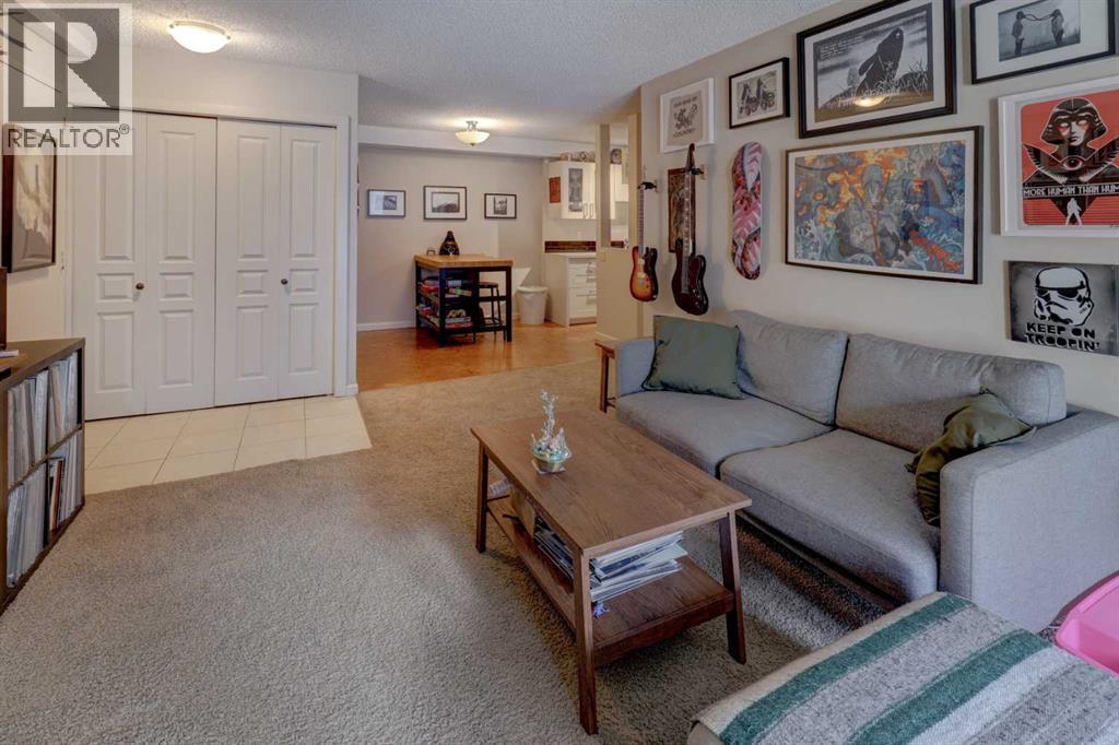 Great value!!!!! This home is perfectly located in a beautiful park like setting with large spruce trees and green space. Enjoy sunny days on your private patio that flows into the grassy courtyard area. The kitchen was recently renovated featuring white shaker cabinets for maximum light reflection in the well appointed space. There are plenty of counter and cupboards including a huge walk-in pantry. Dining area is bright spacious and open to the main living space. Relaxing living room with electric fireplace and sliding glass doors that look out to the green space make this condo a rare find. The bedrooms and bathroom are just a short distance down the hall creating privacy for this part of the home. Another wonderful features of this condo is the primary bedroom that easily accommodates a king size bed and still leaves plenty of room for other furniture. The full wall size closet completes this room. The second bedroom makes a great home office, guest or kids room. Laundry is full size and conveniently accessible in the bathroom. The unit sits in a location that feels like a single family home with a lovely backyard. Parking is right outside the front door. Fantastic area in the heart of Coach Hill. Easy access to shopping, transit, downtown and the mountains. Pet friendly building. (id:6769