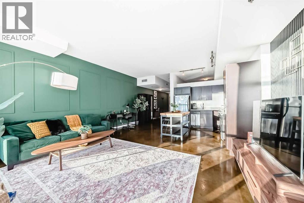 OPEN HOUSE SUNDAY, MARCH 15 FROM 2-4PM****Location, location, location. Situated just one block from the LRT, this exceptional downtown condo offers quick access to the core and is only minutes from all the amenities along vibrant 17th Avenue. Steps from First Street Market and some of Calgary’s most celebrated restaurants including Pat and Betty, Ten Foot Henry, and Calcutta Cricket Club, this home is also within walking distance to the Stampede Grounds, the Saddledome, the upcoming Entertainment District, and everything the Beltline has to offer.Located in the sought-after Colours building, this fully furnished one-bedroom, one-bath residence is short-term rental friendly, making it an excellent investment opportunity. Two elevators welcome you through the trendy lobby and up to the 8th floor, where you’ll enjoy fantastic views from both the living room and private balcony. Polished concrete floors flow throughout the open-concept living, dining, and kitchen areas, while 9-foot ceilings and expansive windows flood the space with natural light, creating an airy and spacious feel.The kitchen offers ample cabinet and counter space, stainless steel appliances, and comes fully equipped for immediate move-in or rental use. If buyers doesn't want furniture, that is something that the seller can take out. A portable island with seating provides casual dining, with plenty of room for a table if desired. Step outside balcony, complete with a gas hookup for convenient BBQing. A large closet houses the washer and dryer and provides extra storage for coats, shoes, or seasonal items.The bedroom features sliding doors and easy access to a spacious four-piece bathroom with a tub and shower combination. Colours residents enjoy communal bike storage, rentable private storage lockers, and a shared outdoor space, with underground parking often available for rent if needed.This unit is ideal for young professionals, first-time buyers, empty nesters, and investors alike. With its unbeatable location and short-term rental flexibility, Colours offers incredible value and lifestyle convenience. What more could you ask for! (id:6769