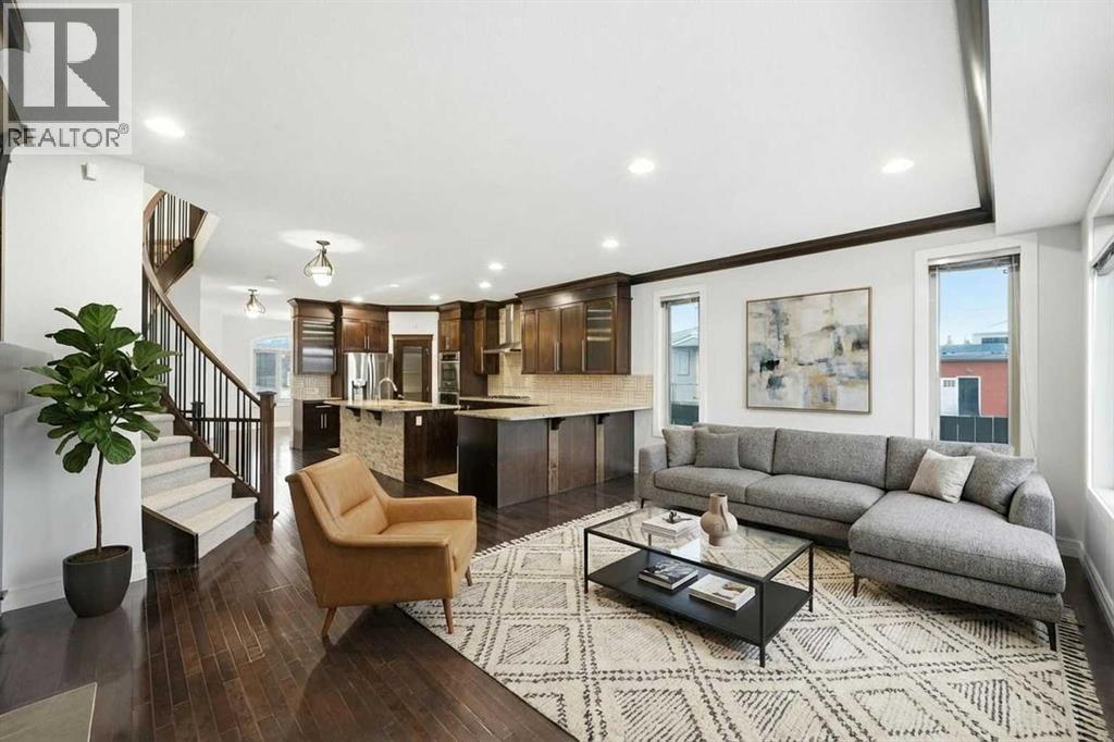 Welcome to this beautifully appointed 4-bedroom semi-detached home offering exceptional accessibility to downtown and nearby amenities in the sought-after community of Tuxedo Park. The main floor showcases an open-concept layout highlighted by a custom curved staircase, rich hardwood flooring, and 9-foot ceilings throughout.The open plan kitchen features full-height custom espresso-stained cabinetry, granite countertops, stainless steel appliances with a gas cooktop and wall oven, a central island, breakfast bar, and a walk-in pantry. Flowing seamlessly from the kitchen, the spacious great room is anchored by a cozy fireplace with custom built-in cabinetry on both sides—ideal for relaxing or entertaining. A dedicated dining room with ample space for a full-sized table is perfect for entertaining.Upstairs, the primary suite offers a luxurious retreat with a 5-piece ensuite, including a Jacuzzi tub, separate tiled shower, and a walk-in closet. Two additional generously sized bedrooms with large closets, an upper-floor laundry area, a 4-piece bathroom, and a skylight that fills the space with natural light complete the upper level.The professionally developed lower level adds valuable living space with a large recreation room and a fourth bedroom, and is roughed in for a third full bathroom. Additional features include central A/C, full-height custom cabinetry, built-in great room cabinets, a skylight above the staircase, gas line to BBQ, central vacuum rough-in, rear deck, window coverings throughout, and 9-foot main-floor ceilings. All of this is located just minutes from the city core.Available for quick possession, book your showing today! (id:6769