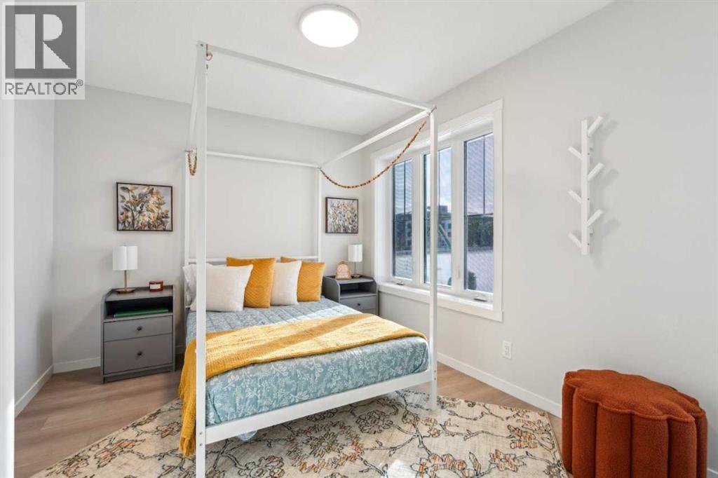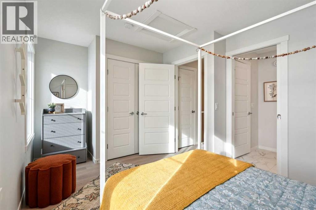 Welcome to Ambrosia, a beautifully designed 2-bedroom, 2.5-bath, two-storey stacked townhome in the scenic community of Crimson Ridge. Take in stunning views of the Bow Valley River, Downtown Calgary, and Canada Olympic Park, with a golf course just steps from your door. The open-concept main floor is perfect for entertaining, featuring a spacious kitchen island and luxury vinyl plank flooring throughout the main level and bathrooms. Upstairs offers two generous bedrooms designed for comfort and privacy, including a primary bedroom with walk-in closet and private ensuite, along with the convenience of upper-floor laundry. Built for superior energy efficiency with triple-pane windows and enhanced insulation, this home provides year-round comfort and reduced energy costs. Thoughtfully crafted for modern living. Photos are representative. (id:6769