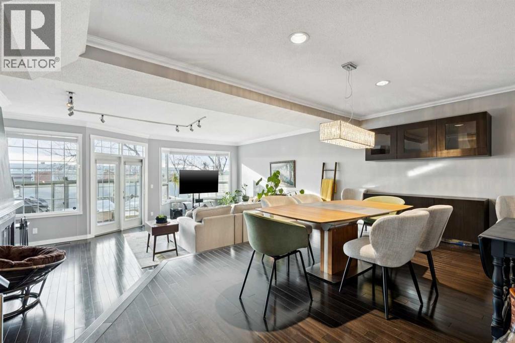 * SEE VIDEO * This stylish 2 bedroom, 2.5 bath plus bonus room townhome is perfectly suited for the urban buyer seeking comfort, design, and convenience. Tastefully updated throughout, the main floor features rich hardwood floors, a raised dining area, and a spacious living room centered around an elegant wood-burning fireplace with gas assist. Natural light pours in through French doors that open to a private, west-facing deck equipped with a BBQ gas line — ideal for relaxing and entertaining.The European-inspired kitchen showcases granite countertops, stainless steel appliances w/ gas stove, and a bright eating nook. Upstairs, you’ll find a cozy bonus room/den, a generous primary suite with a stunning ensuite complete with glass shower, soaker tub, heated floors, and a walk-in closet with custom organizers. Step out onto the charming balcony, perfect for enjoying your morning coffee or evening sunsets. A spacious second bedroom and 3-piece bathroom complete the upper level.The lower level offers a large laundry and utility area with ample storage, a newer furnace, and a double tandem garage.Ideally situated just minutes from Market Mall, the University District, top schools, and a wide range of shopping and dining options, this home also enjoys close proximity to the University of Calgary, Shouldice Athletic Park, Edworthy Park, transit, and quick access to Shaganappi Trail — making city living effortless.This exceptional opportunity won’t last long — book your private showing today! (id:6769