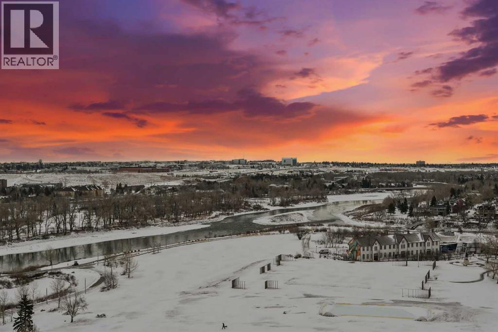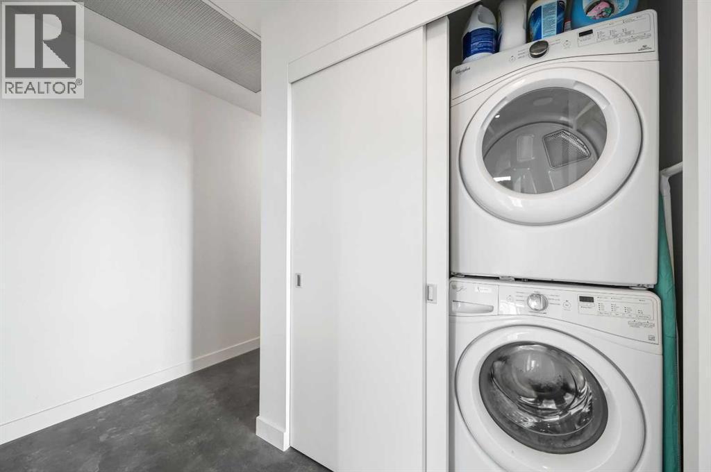 Welcome to this stunning 2-bedroom, ultra-modern corner condo offering breathtaking panoramic views and an unbeatable inner-city lifestyle. Designed with both style and functionality in mind, this bright and spacious home features 9-foot ceilings, floor-to-ceiling windows, and a spectacular balcony perfect for enjoying Calgary’s skyline and unforgettable sunsets. From the moment you enter, you’re greeted by unobstructed views of the Calgary Tower, Central Library, and Stampede Grounds, creating an instant wow factor. The open-concept layout is flooded with natural light and showcases contemporary finishes throughout, including a sleek kitchen, modern bathroom, and thoughtful design that maximizes both space and comfort. The southwest exposure enhances the airy feel, while the partially covered balcony allows for year-round enjoyment. Additional highlights include concrete construction for superior soundproofing, in-suite laundry, a spacious foyer, central storage closet, titled heated underground parking, and assigned storage. The building offers exceptional amenities, including a rooftop social lounge and patio ideal for watching Stampede fireworks or enjoying views of the Bow River and downtown skyline, as well as a bike storage room with repair station and a dedicated dog wash. Ideally located on a quiet, low-traffic street yet steps from downtown, transit, river pathways, shops, restaurants, and entertainment, this move-in-ready home delivers the perfect blend of modern living, walkability, and vibrant urban lifestyle. (id:6769