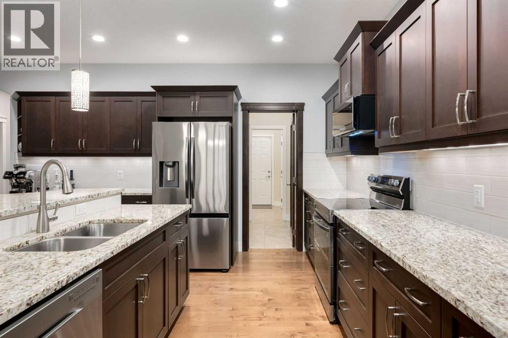 Wake up to laughter, green space & endless outdoor fun right in your backyard. BACKING ONTO a playground, bike pump track & water park, this beautifully crafted 2-storey home offers a lifestyle that’s hard to beat! Built by Executive Builders/Michaels Homes, the home showcases OVER 3200sqft of total space, quality construction & timeless finishes, including rich hardwood floors, low-E windows & meticulous attention to detail throughout. The heart of the home is its bright, open-concept main floor—designed for connection, comfort & entertaining. The kitchen is both stylish & functional with dark-stained maple cabinetry, granite countertops, a WALK-THROUGH butler pantry & a large granite island that naturally becomes the hub for homework, casual meals, or catching up with friends while dinner comes together. Open sight-lines flow seamlessly into the dining & living areas and out to the deck, creating an inviting space where family life unfolds with ease. Whether you’re cozying up by the fireplace on cooler evenings or enjoying summer days outdoors, this home is made for every season. The backyard is thoughtfully designed for entertaining and relaxation, featuring a fire pit & convenient gas hook-ups for your BBQ—perfect for hosting gatherings or unwinding under the stars. Beautiful perennials enhance both the front and backyard, adding colour, charm & low-maintenance curb appeal year after year. Upstairs, the primary bedroom is a private retreat, complete with a WALK-IN CLOSET & spa-inspired 5-PIECE ENSUITE featuring a DOUBLE VANITY, separate shower & deep soaker tub. No need to haul laundry up and down flights of stairs—the TOP FLOOR LAUNDRY ROOM adds everyday convenience. A spacious BONUS ROOM with 11' VAULTED CEILINGS, a cozy window reading nook (w/ storage) offers the perfect flex space for movie nights, a playroom or quiet lounge. Two additional bedrooms & a full four-piece bath complete the upper level. Thoughtful extras elevate the home even further, including a well-appointed main floor office space, a functional mudroom w/ oversized closets, in-floor plug-ins in the living room to make any furniture configuration work, central vacuum system & an OVERSIZED HEATED DOUBLE ATTACHED GARAGE complete with BUILT-IN SHELVING, a WORK BENCH & an additional man-door at the rear of the garage —ideal for projects, hobbies, organized storage & yard maintenance . The unfinished basement offers a blank canvas ready for your vision—already enhanced with roughed-in IN-FLOOR HEATING for year-round comfort, whether you dream of a future additional family room, home gym, guest space, or creative retreat. Additional highlights include REFRESHED interior paint (November/December 2025), NEW KITCHEN APPLIANCES (2023), NEW WASHER & DRYER (2024) & NEW CLASS 4 SHINGLES (2024). Set in a sought-after NW location in High River. Close to excellent schools, scenic walking paths, a golf course, shopping & more— this isn’t just a house, it’s a place where memories are made & lifestyles thrive. (id:6769