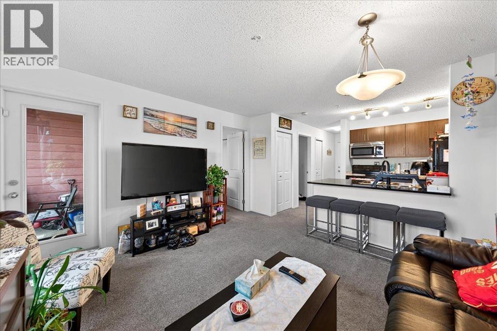 Welcome to this beautiful third-floor condo offering a perfect blend of comfort, accessibility, and modern design. This 2-bedroom, 1-bathroom home features a bright, functional layout with a warm, contemporary feel that is truly move-in ready. Enjoy added convenience with the elevator located just steps from the unit, providing quick and easy access throughout the building.The open-concept design allows the kitchen to flow seamlessly into the dining and living areas—ideal for everyday living, entertaining, or working from home. Both bedrooms are generously sized and versatile, easily accommodating a home office, guest room, or shared living arrangement. The well-appointed 4-piece bathroom is clean, modern, and thoughtfully designed for everyday comfort.Step out onto the private balcony and enjoy beautiful third-floor views, the perfect spot for morning coffee or evening relaxation. A parking stall conveniently located directly in front of the unit adds year-round ease and security.Located in the desirable community of Legacy, residents enjoy close proximity to parks, walking paths, schools, shopping, restaurants, and everyday amenities, along with quick access to major roadways for an easy commute. (id:6769