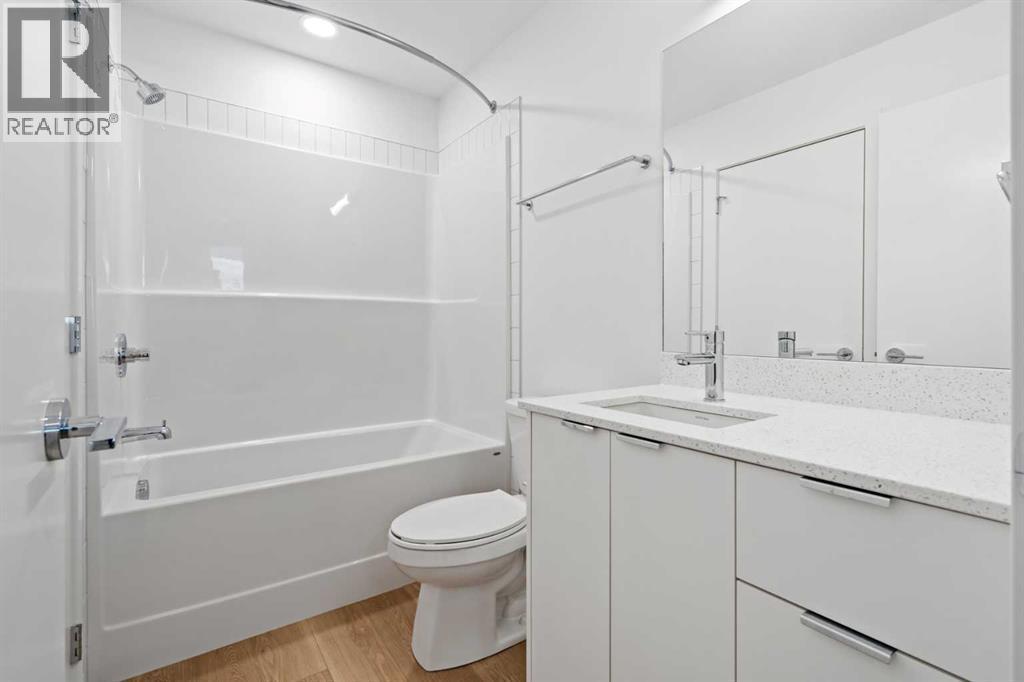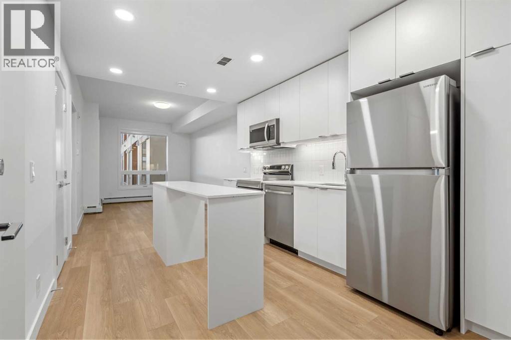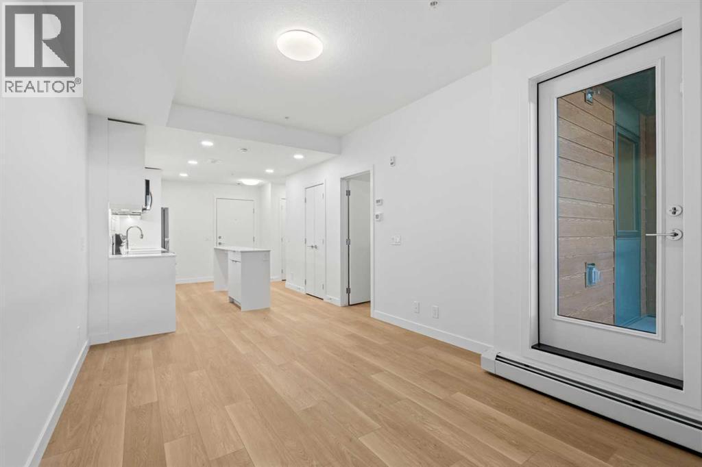BRAND NEW | 1 BED / 1 BATH / 502 SQ FT | MODERN FINISHES | LOW CONDO FEES | TITLED PARKING – Welcome to East Hills by Minto Communities, an award-winning Canadian builder with over 70 years of experience. This condo complex is located in the growing community of Belvedere, just steps from East Hills Shopping Centre. Designed to foster a true sense of community, East Hills features pedestrian pathways, nearby greenspace, and a walkable, neighbour-friendly layout. Enjoy unbeatable convenience with Costco, Walmart, banks, restaurants, and everyday essentials right across the street, along with quick access to major roadways and public transit for an easy commute downtown or around the city.This brand-new 1 bedroom, 1 bathroom condo offers a smart and efficient layout with 560 sq ft of well-designed living space and modern finishes throughout. As you enter the home, the kitchen is located at the front on the left and features a functional island, stainless steel appliances, ample cabinetry, and convenient storage. The open-concept layout flows seamlessly toward the back of the home into the living area, where you’ll find access to a private balcony—perfect for relaxing or enjoying warm summer evenings.The bedroom is located just off the living room and offers a comfortable retreat, complete with a walk-through closet that leads directly into the bathroom. The bathroom is thoughtfully designed with dual access from both the primary bedroom and the foyer, adding convenience for guests. In-suite laundry is also located here, maximizing functionality without sacrificing space.Additional highlights include titled parking, a pet-friendly building (with restrictions), access to an on-site fitness centre located in Building 3000, and a rooftop patio in Building 1000—both available to all residents—enhancing the lifestyle appeal of this low-maintenance home. With modern design, low condo fees, and an exceptional location, this is an excellent opportunity for first-time buyers , investors, or those looking to downsize in one of southeast Calgary’s most convenient communities. Contact Minto’s sales staff and book your visit today! (id:6769